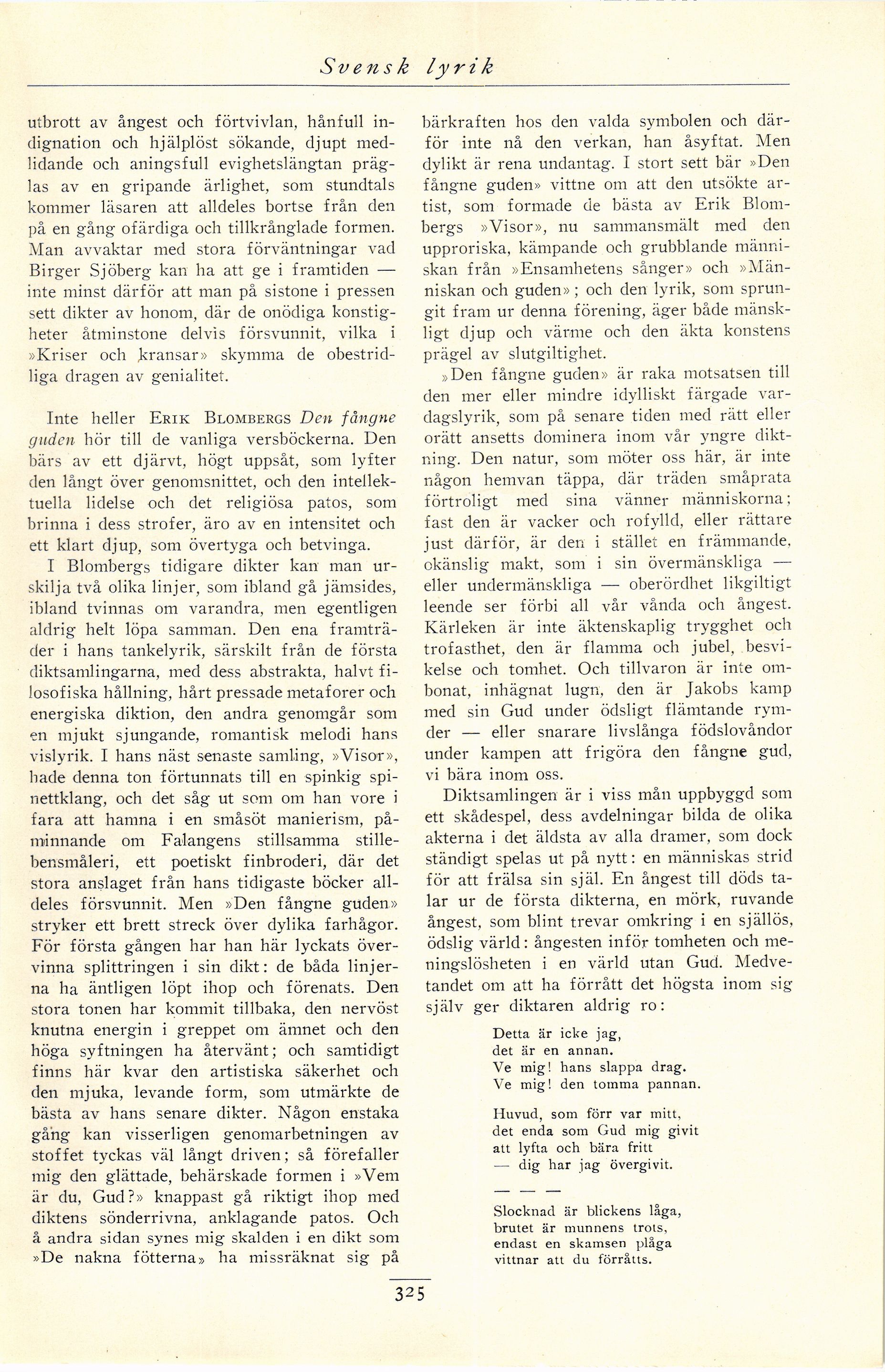 »Människan och guden» ; och den lyrik, som