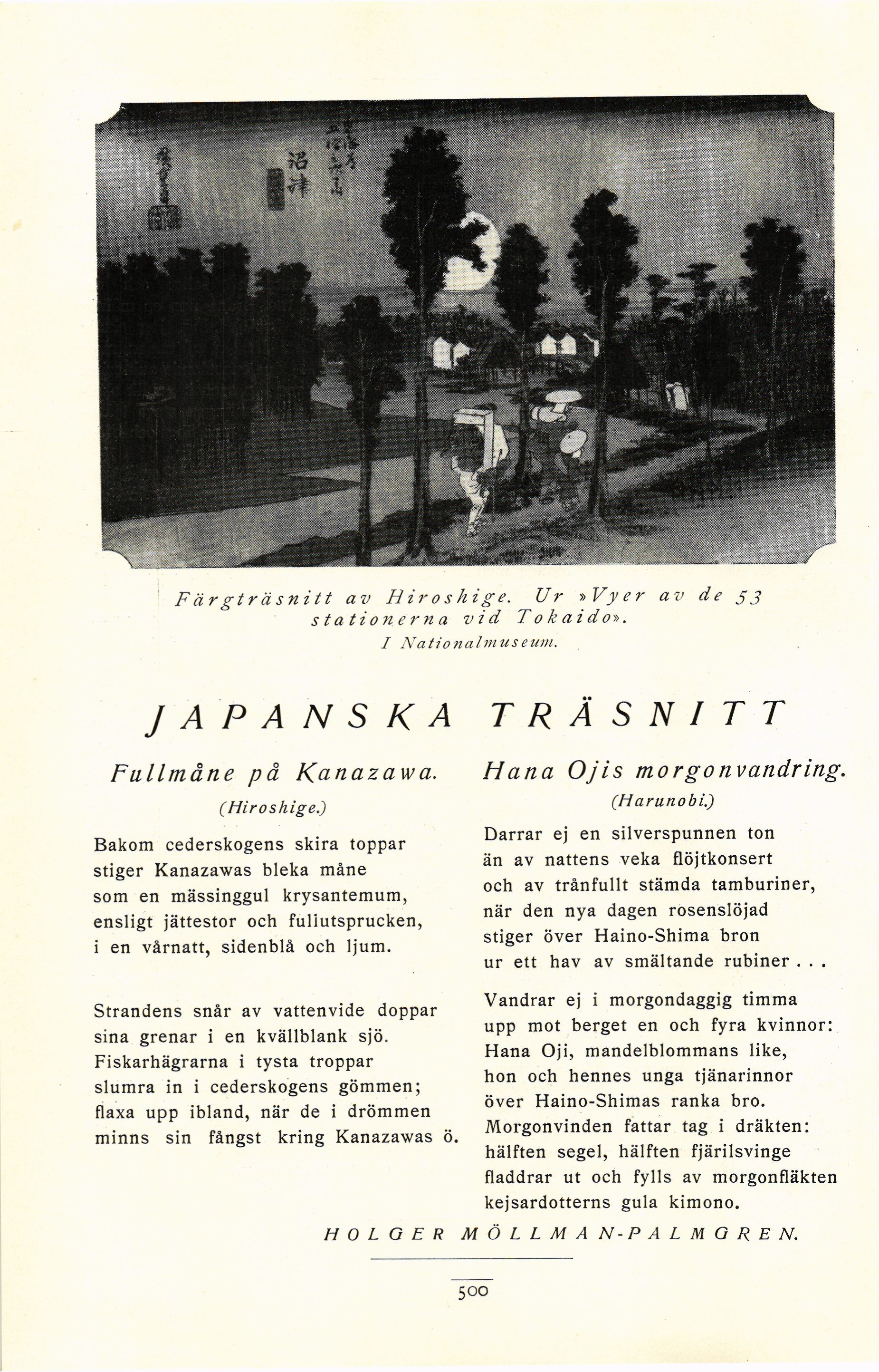 Full resolution (JPEG) - On this page / på denna sida - Nionde häftet - Japanska träsnitt. Av Holger Möllman-Palmgren - Fullmåne på Kanazawa - Hana Ojis morgonvandring
