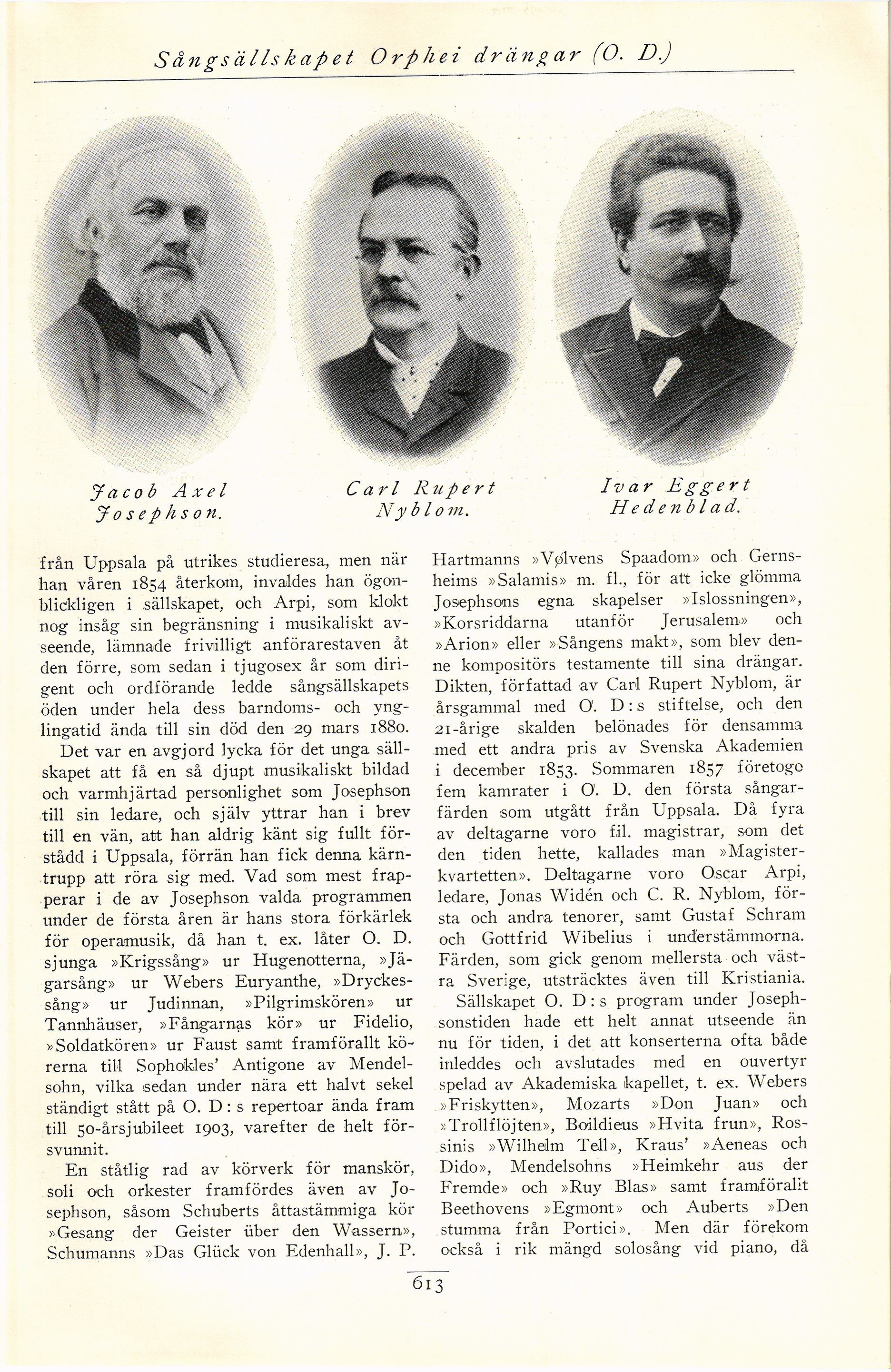 - Sångsällskapet Orphei Drängar (O. D.) Några ord med anledning av 75-års-jubileet. Av Knut Nyblom