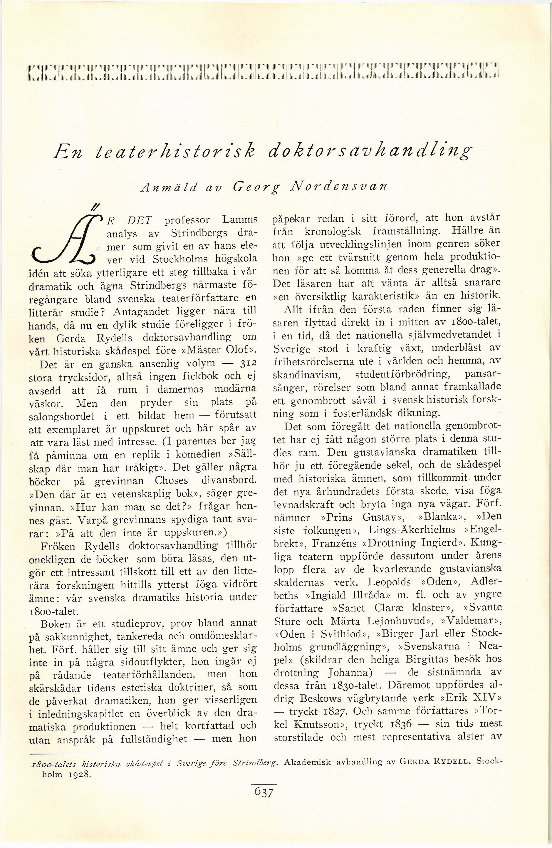Full resolution (JPEG) - On this page / på denna sida - Elfte häftet - En teaterhistorisk doktorsavhandling. Anmäld av Georg Nordensvan