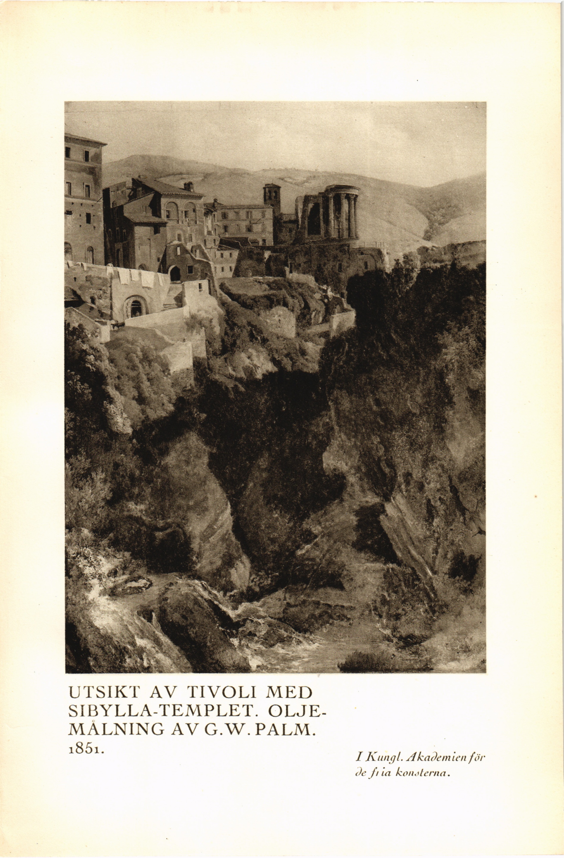 Full resolution (JPEG) - On this page / på denna sida - Fjärde häftet - Utsikt av Tivoli med Sibylla-templet. Oljemålning av G. W. Palm. 1851