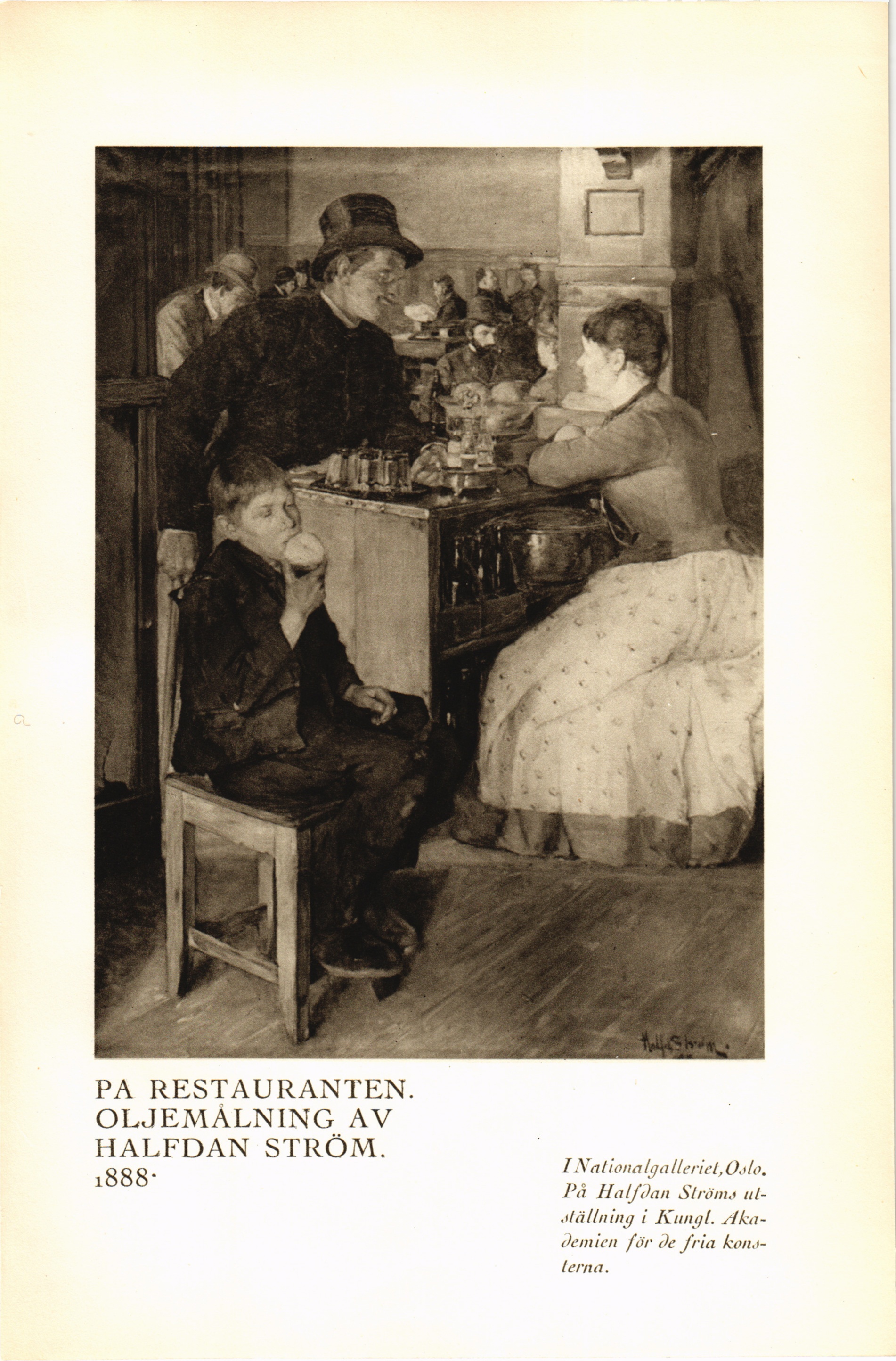 Full resolution (JPEG) - On this page / på denna sida - Fjärde häftet - På restauranten. Oljemålning av Halfdan Ström. 1888