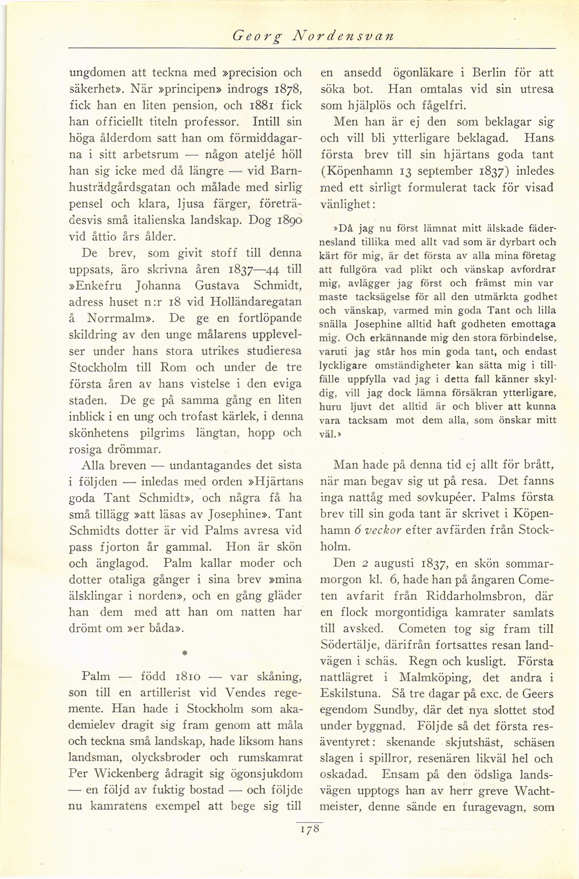 - När »gubben Palm» var ung. Vandringsår och ungdomssvärmeri. Efter gamla brev av Georg Nordensvan