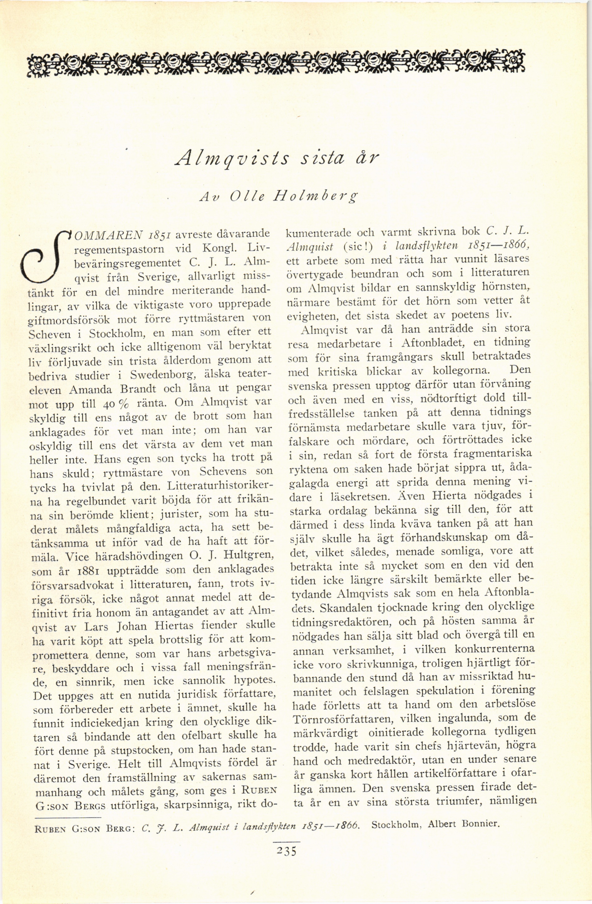 Full resolution (JPEG) - On this page / på denna sida - Fjärde häftet - Almqvists sista år. Av Olle Holmberg