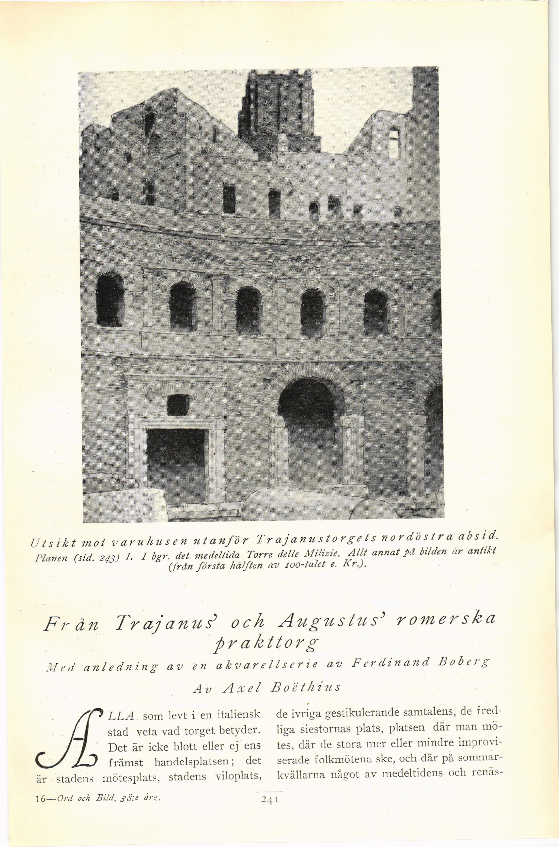 Full resolution (JPEG) - On this page / på denna sida - Femte häftet - Från Trajanus’ och Augustus’ romerska prakttorg. Med anledning av en akvarellserie av Ferdinand Boberg. Av Axel Boëthius