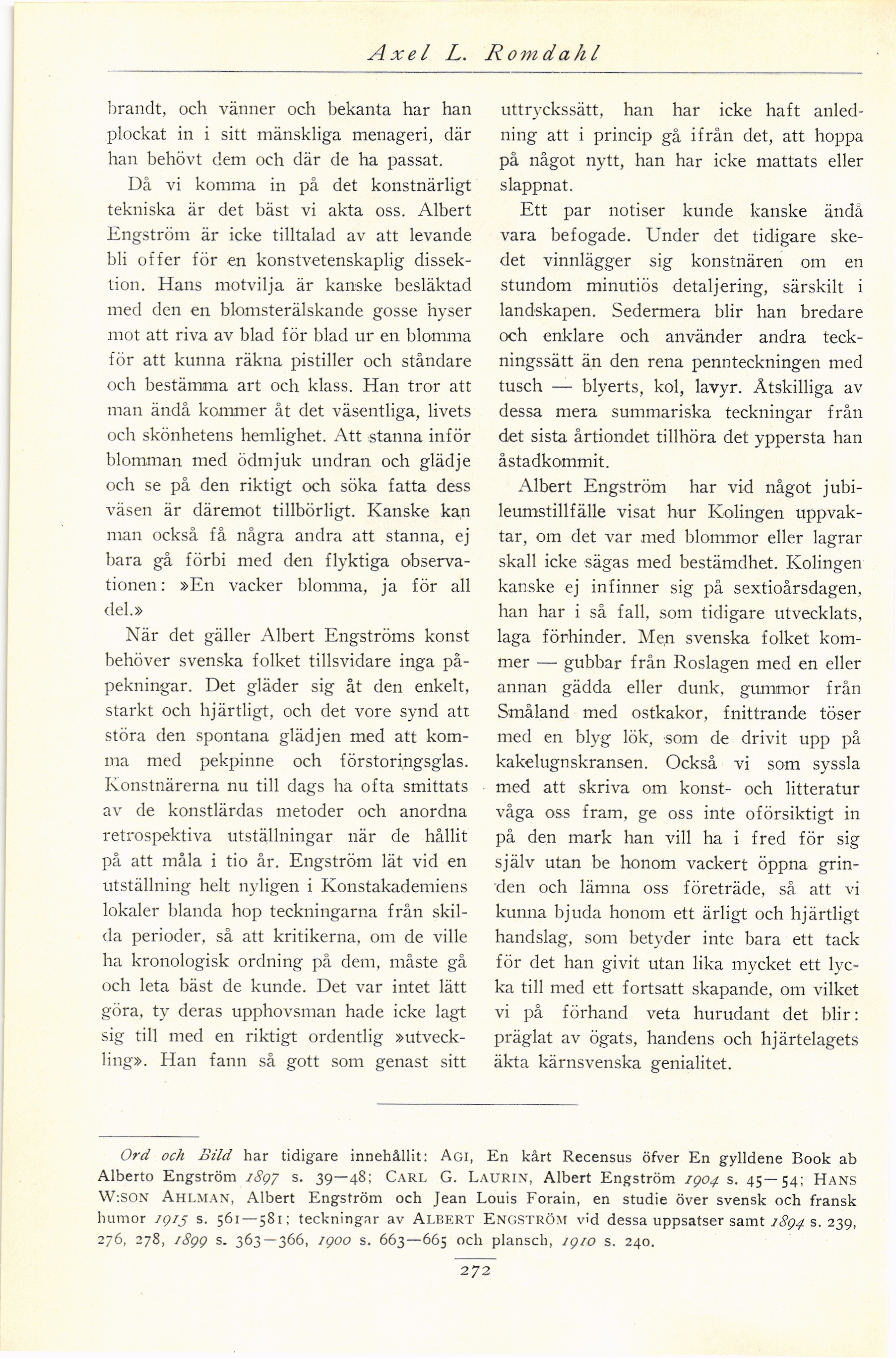 Alberto Engström i8gy s. 39—48; Carl G. Laurin, Albert Engström 1904 s. 45—54; Hans