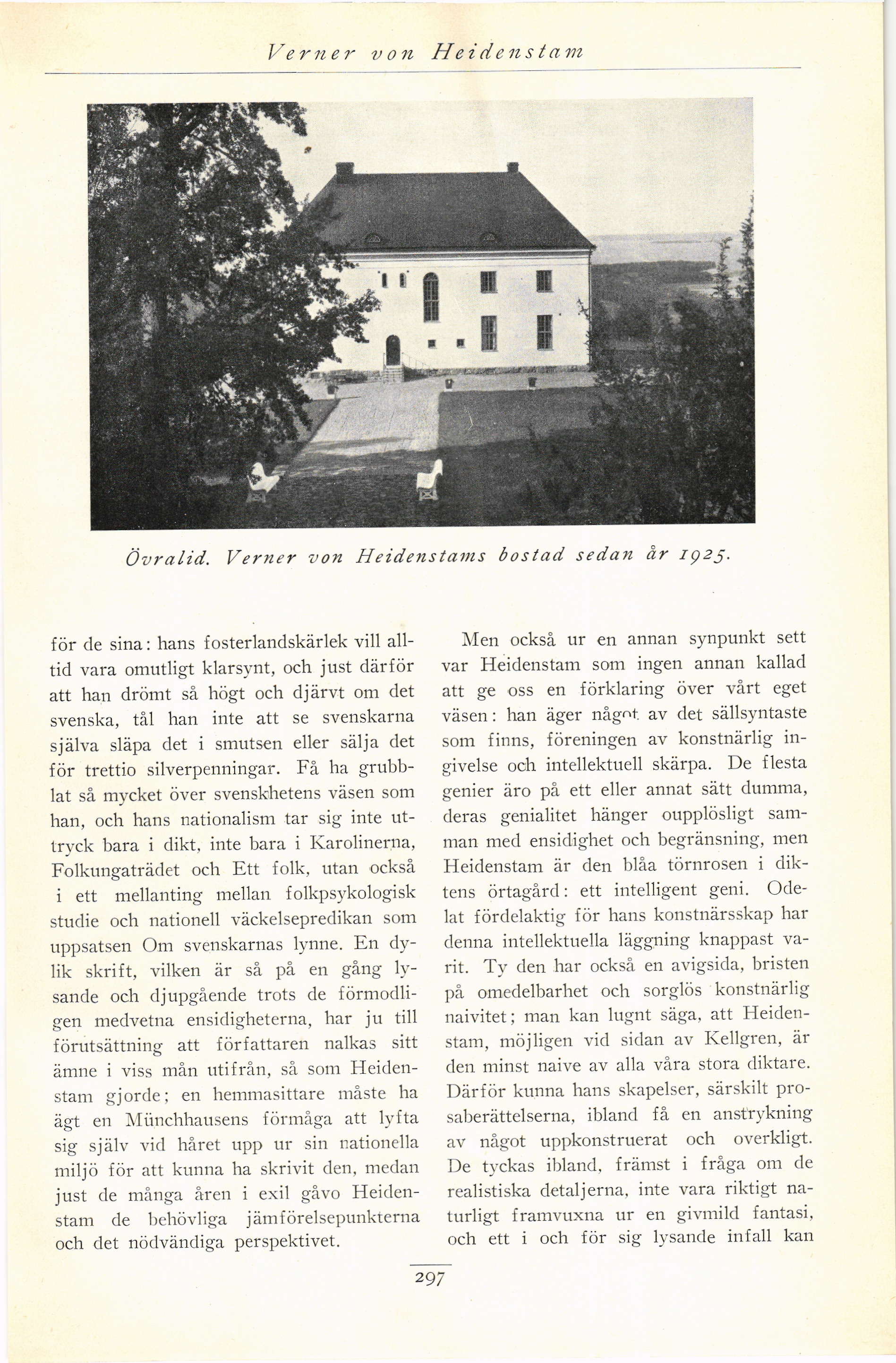 Övralid. Verner von Heidenstams bostad sedan år 1925.