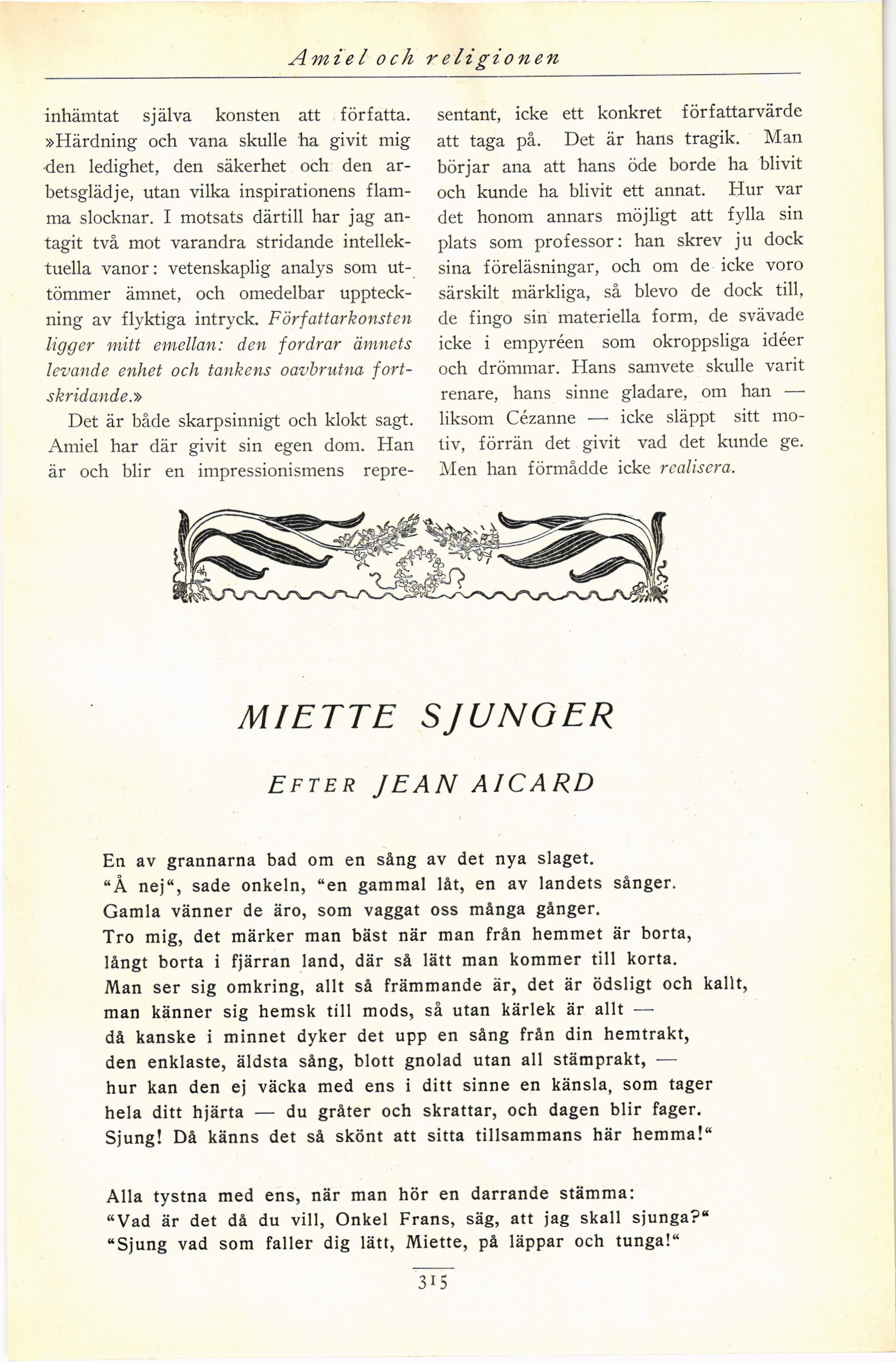 Full resolution (JPEG) - On this page / på denna sida - Sjätte häftet - Amiel och religionen. Av August Brunius - Miette sjunger. Efter Jean Aicard. Översättning av Erik Lidforss