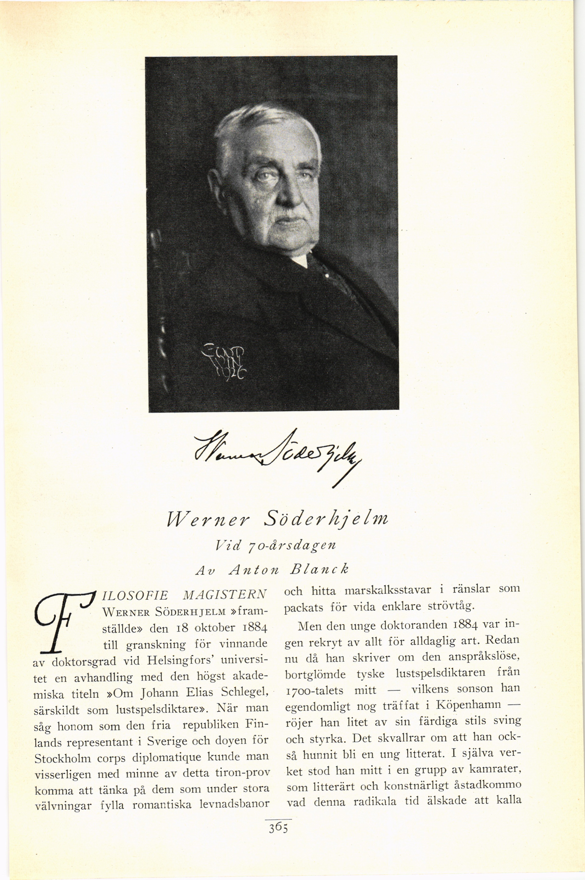 Full resolution (JPEG) - On this page / på denna sida - Sjunde häftet - Werner Söderhjelm. Vid 70-årsdagen. Av Anton Blanck