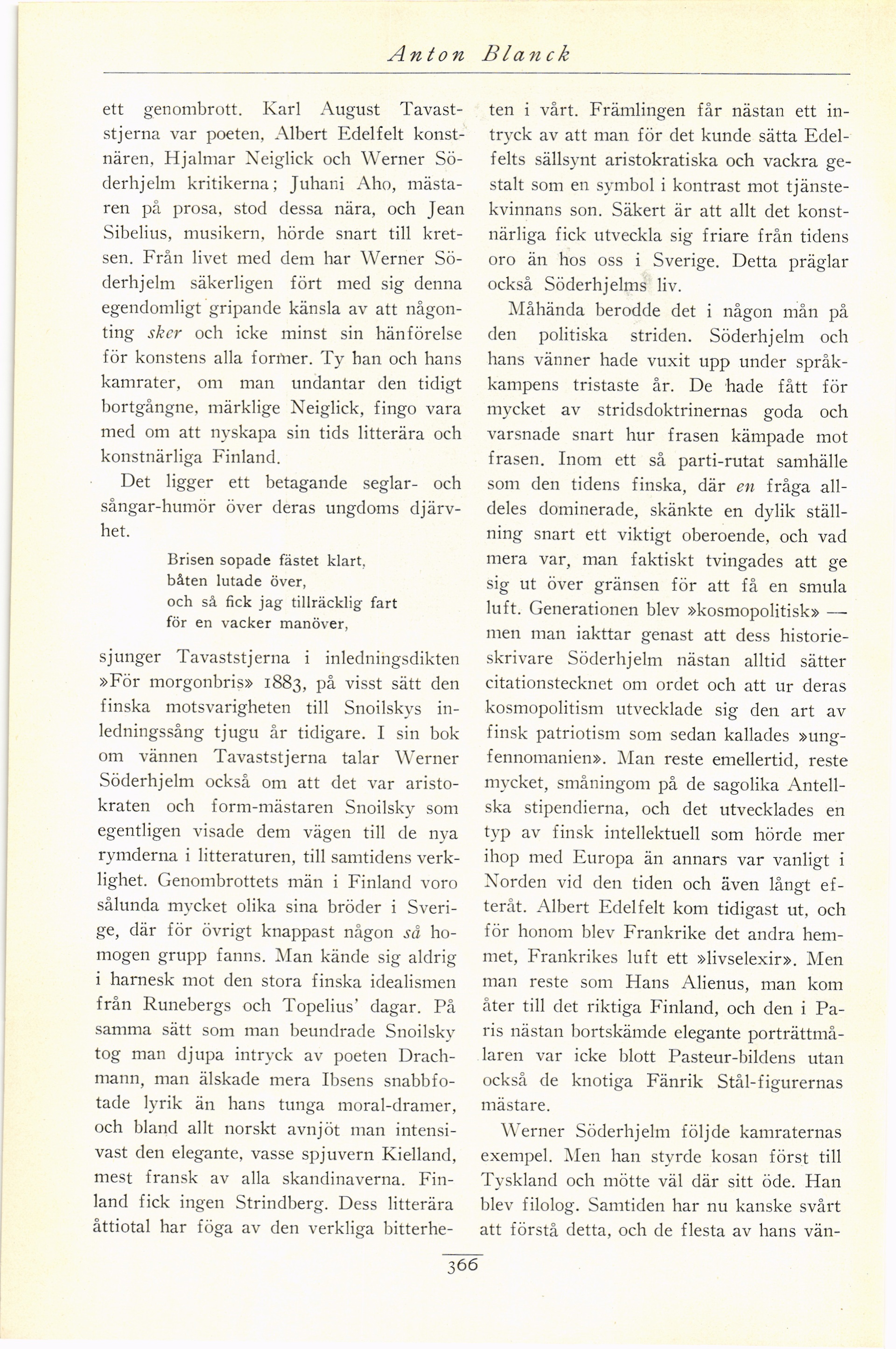 om vännen Tavaststjerna talar Werner
