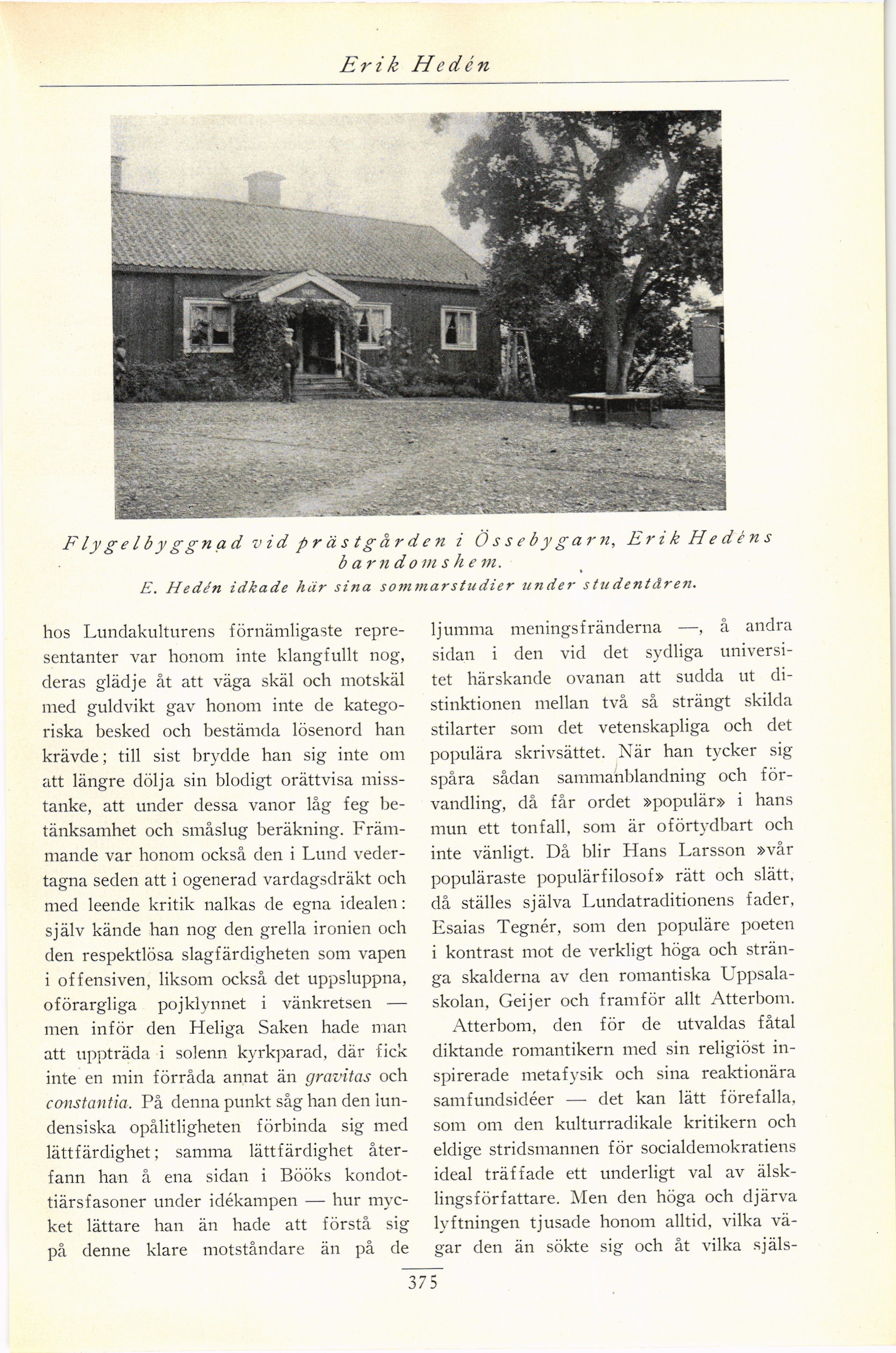 E. Hedén idkade här sina sommar studier tinder studentåren.
