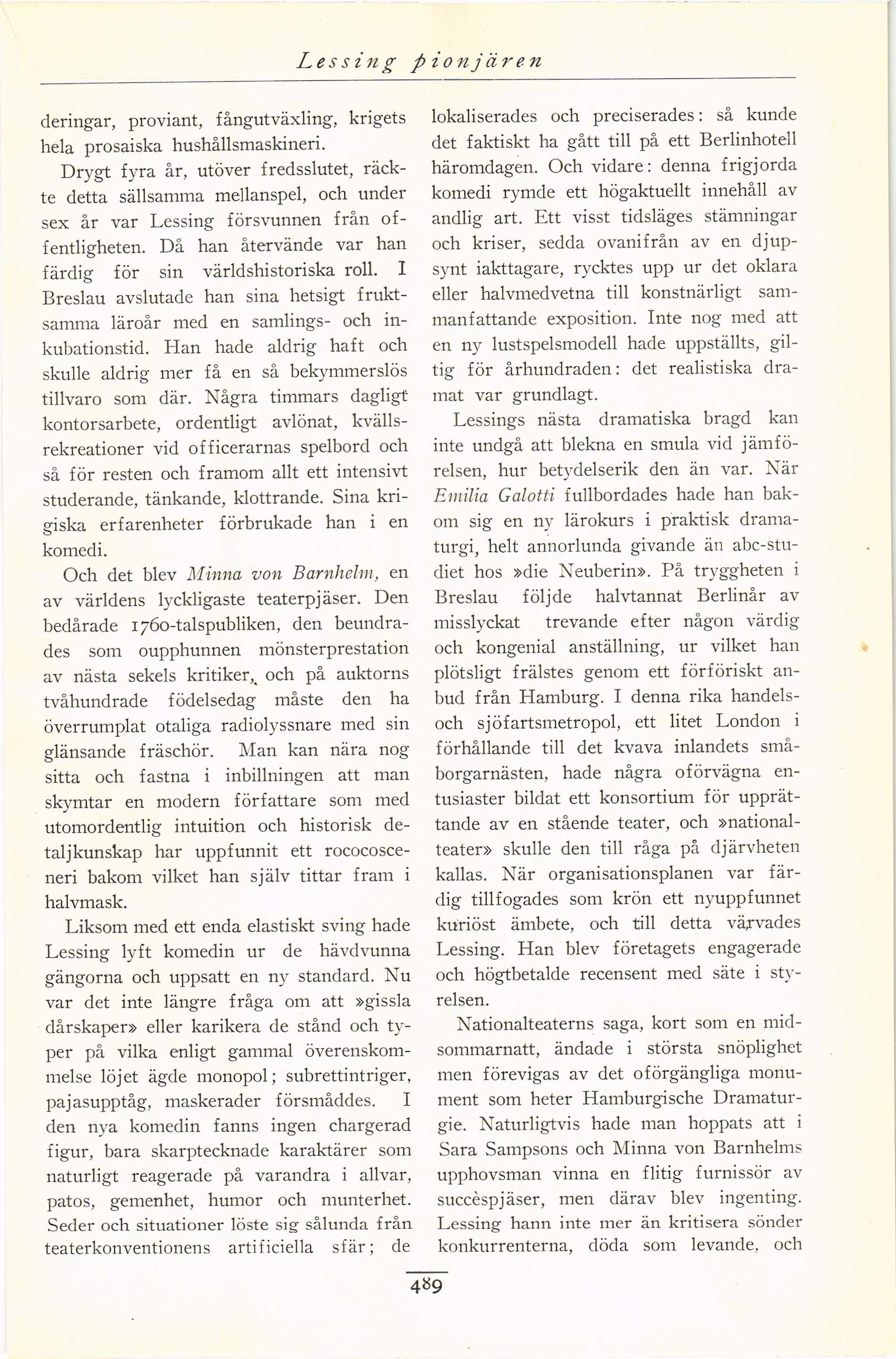 Lessing lyft komedin ur de hävdvunna
