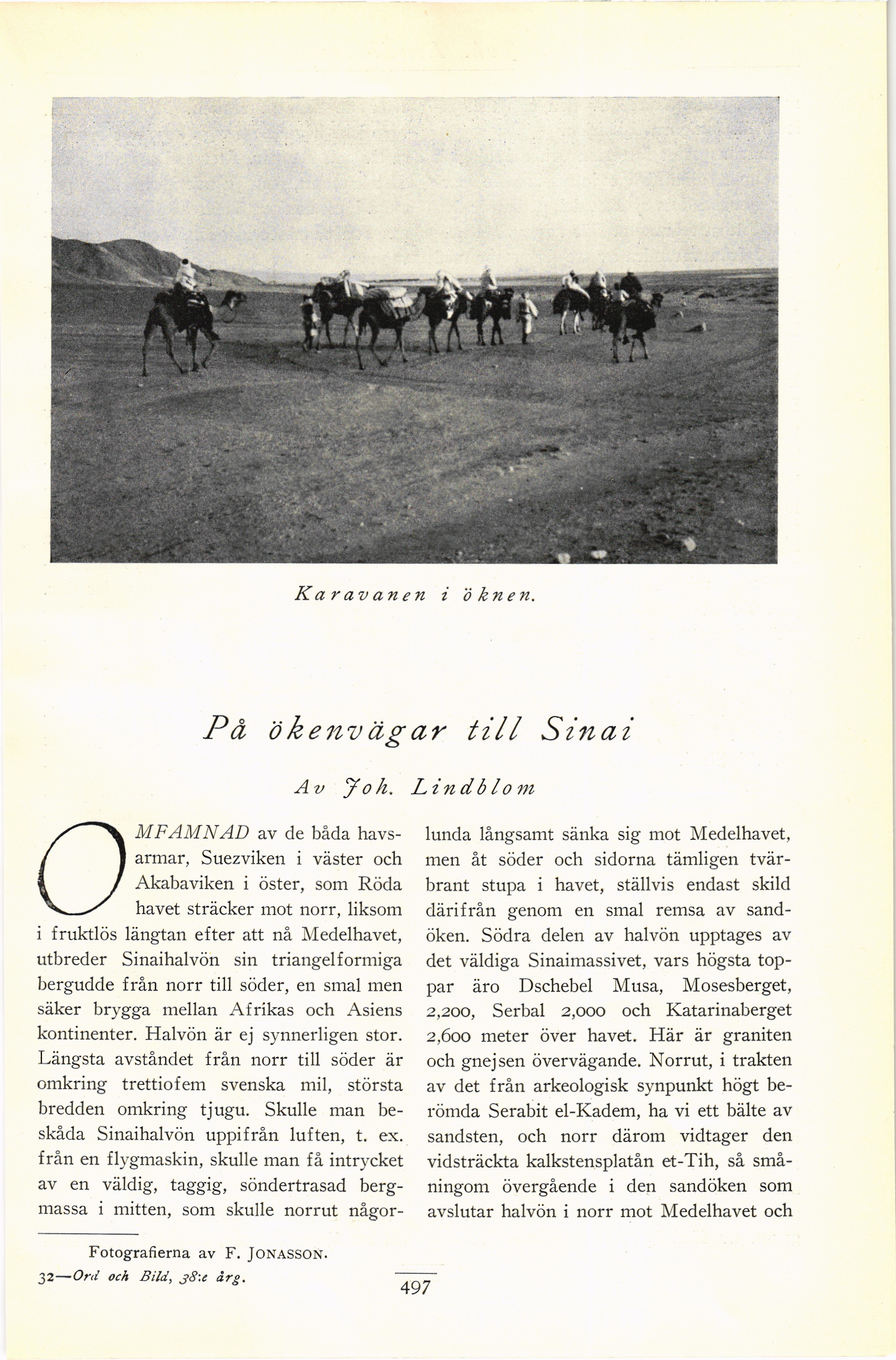 Full resolution (JPEG) - On this page / på denna sida - Nionde häftet - På ökenvägar till Sinai. Av Joh. Lindblom