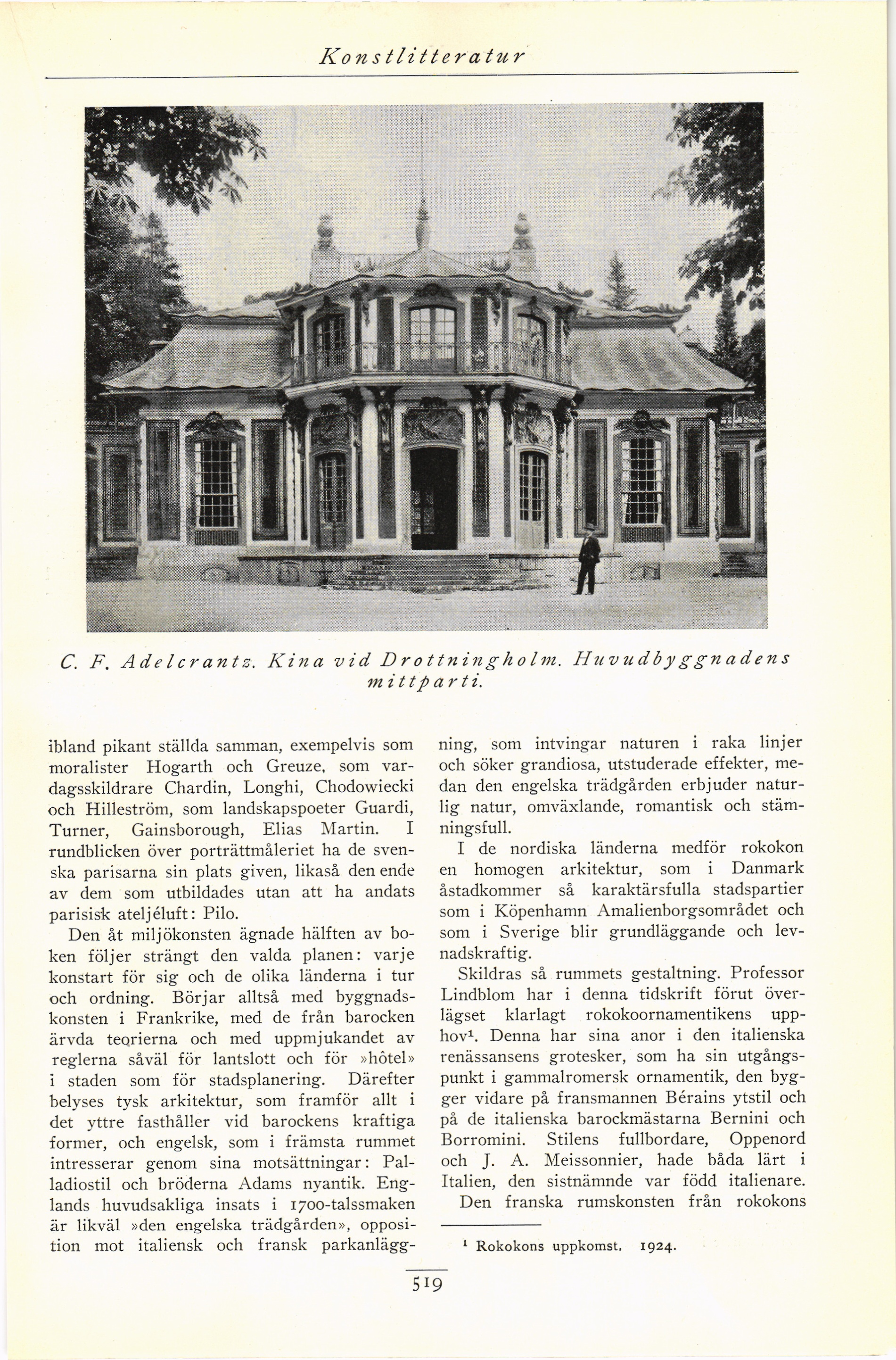 C. F. Ade l cr antz. Kina v i d D r o t tnin g h o Im. Huvudbyggnadens