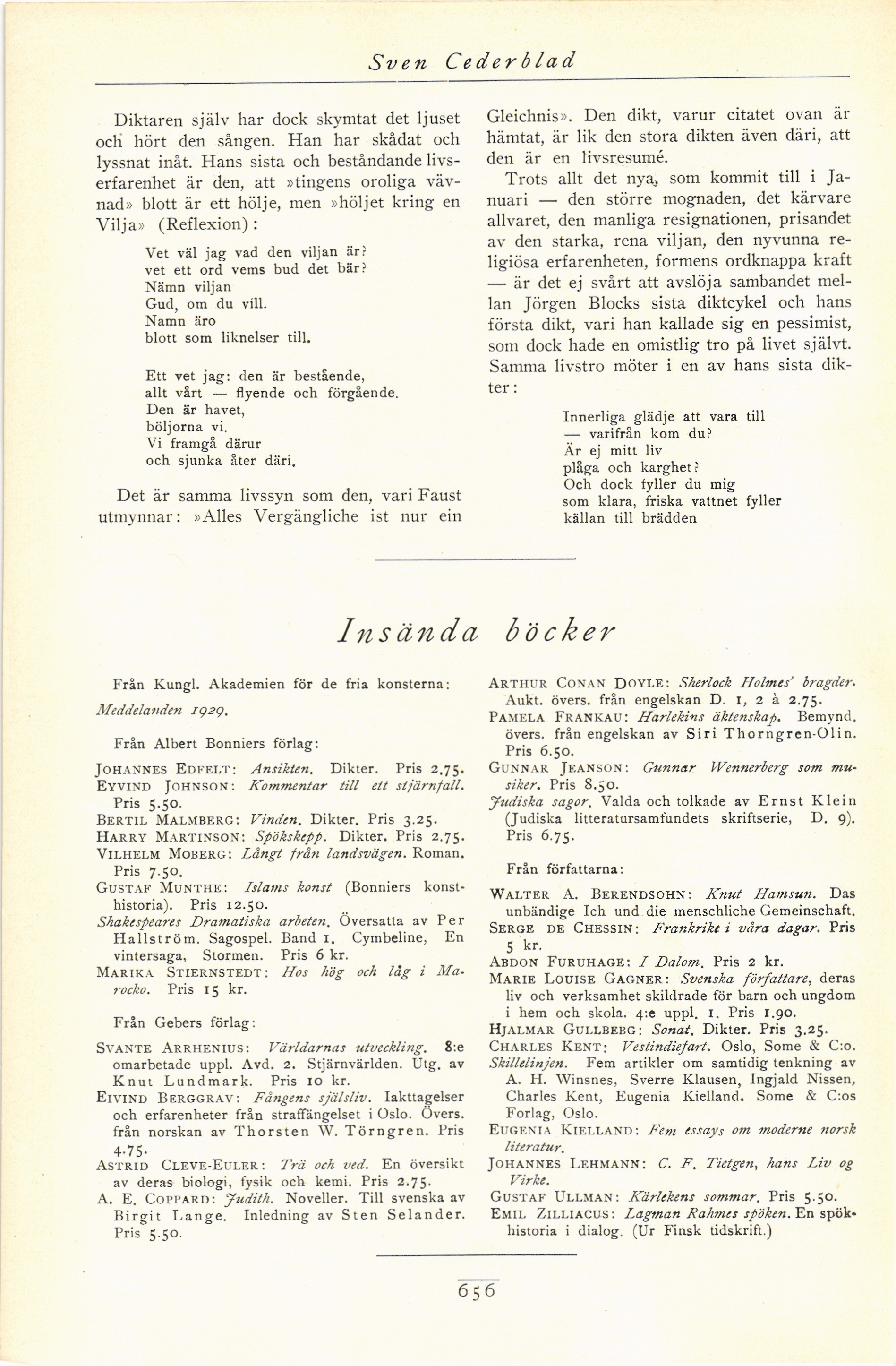 Full resolution (JPEG) - On this page / på denna sida - Elfte häftet - Jörgen Block. En lyrikersilhuett. Av Sven Cederblad - Insända böcker