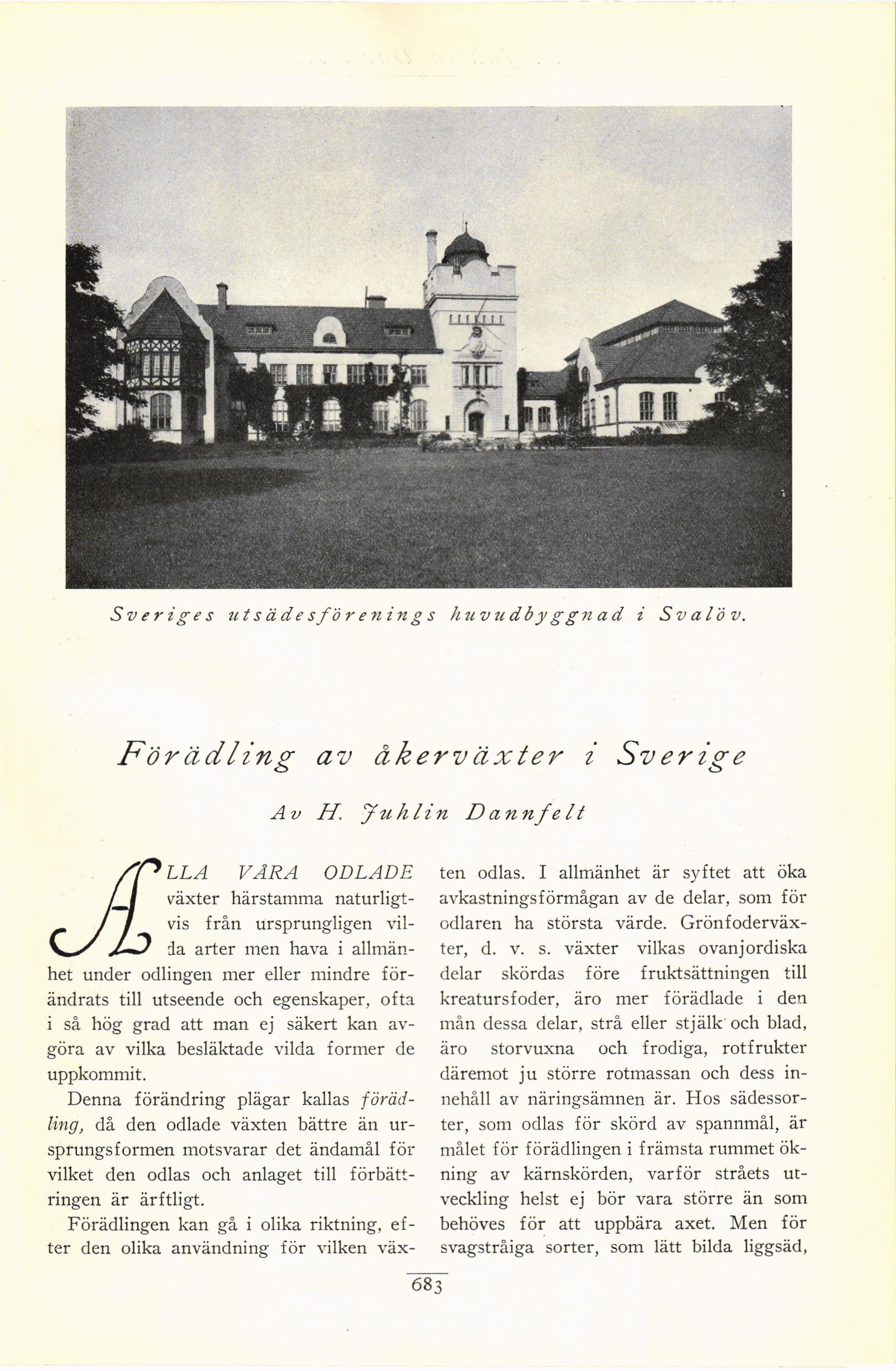 Sveriges utsädesförenings huvudbyggnad i Sv atö v.