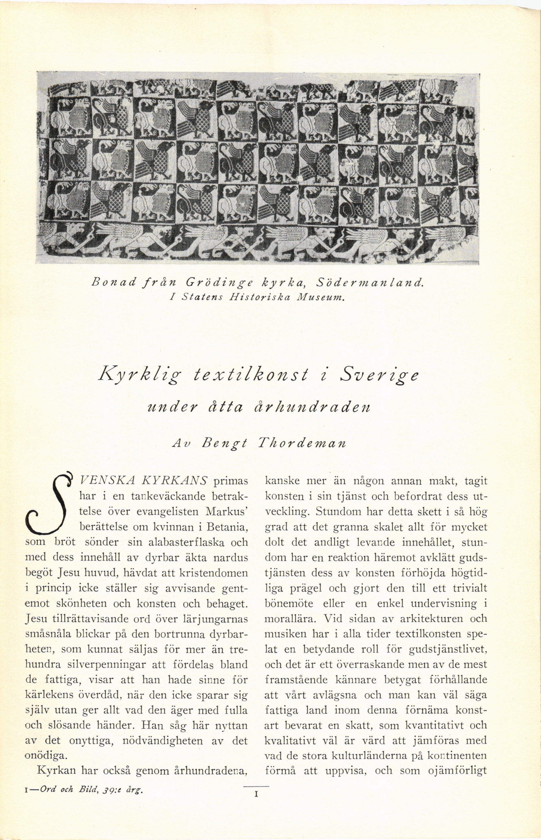 Full resolution (JPEG) - On this page / på denna sida - Första häftet - Kyrklig textilkonst i Sverige under åtta århundraden. Av Bengt Thordeman