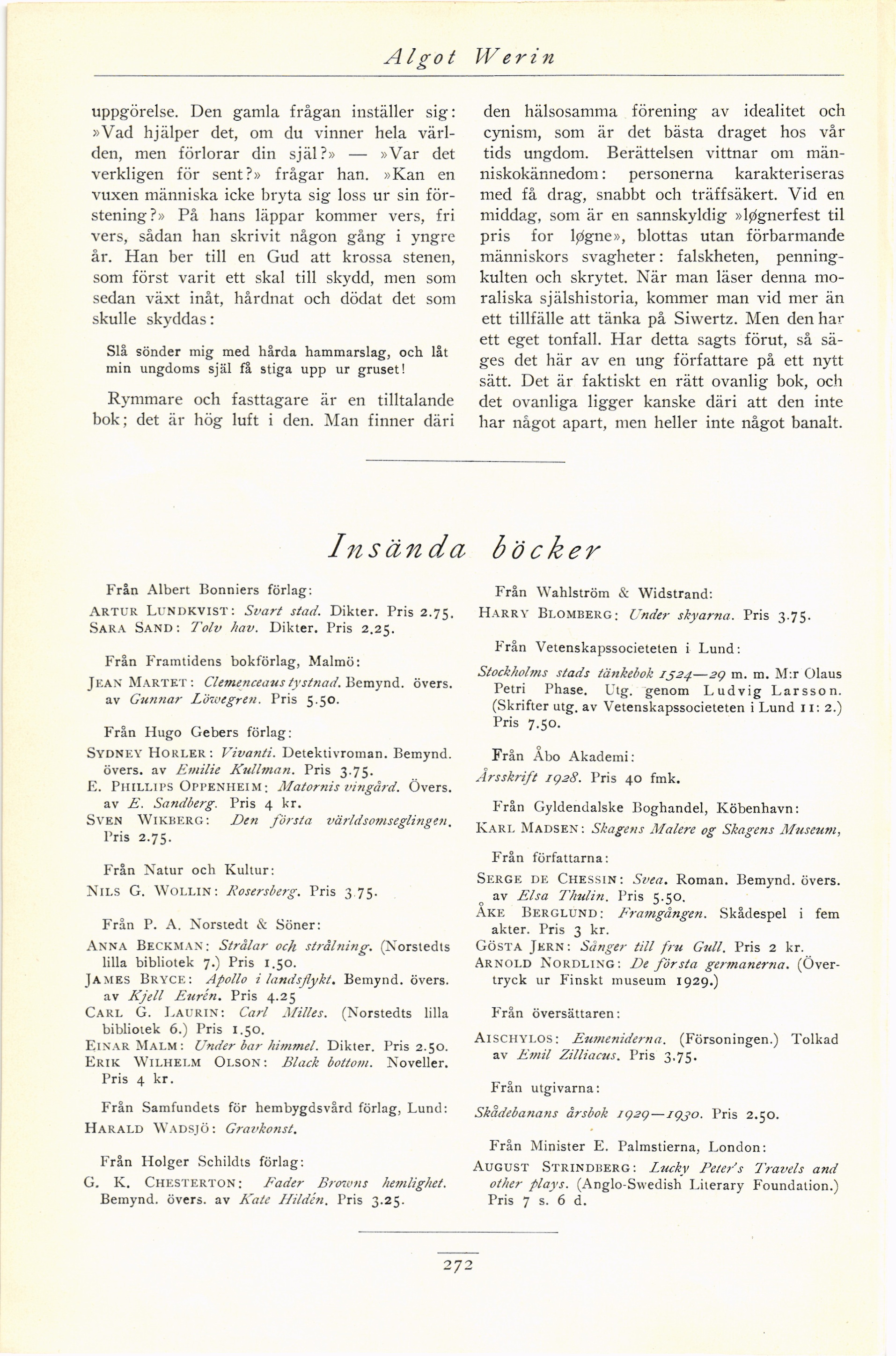 Full resolution (JPEG) - On this page / på denna sida - Femte häftet - Ung svensk romankonst. Av Algot Werin - Insända böcker