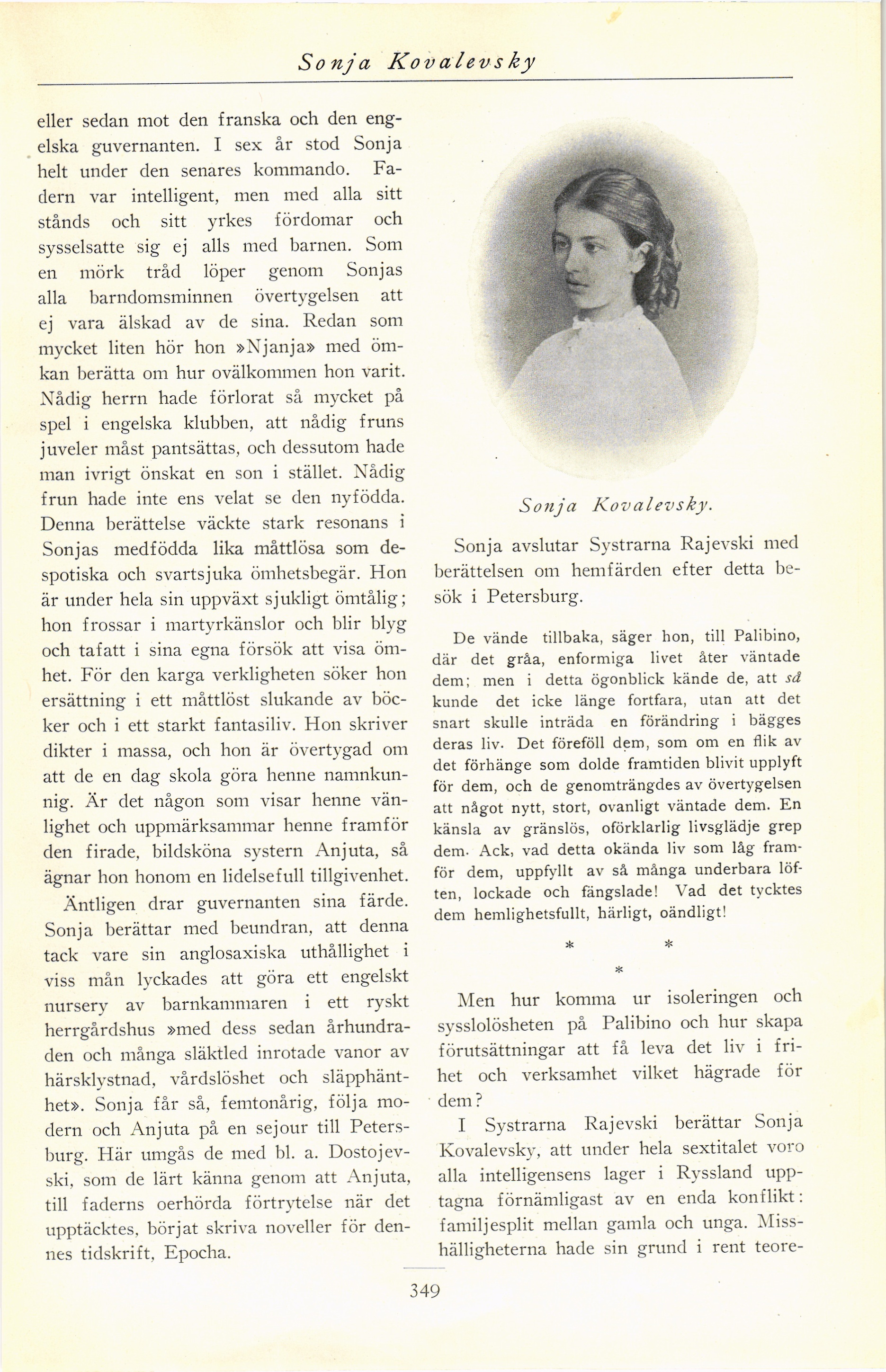 Full resolution (JPEG) - On this page / på denna sida - Sjunde häftet - Sonja Kovalevsky. Av Gurli Linder