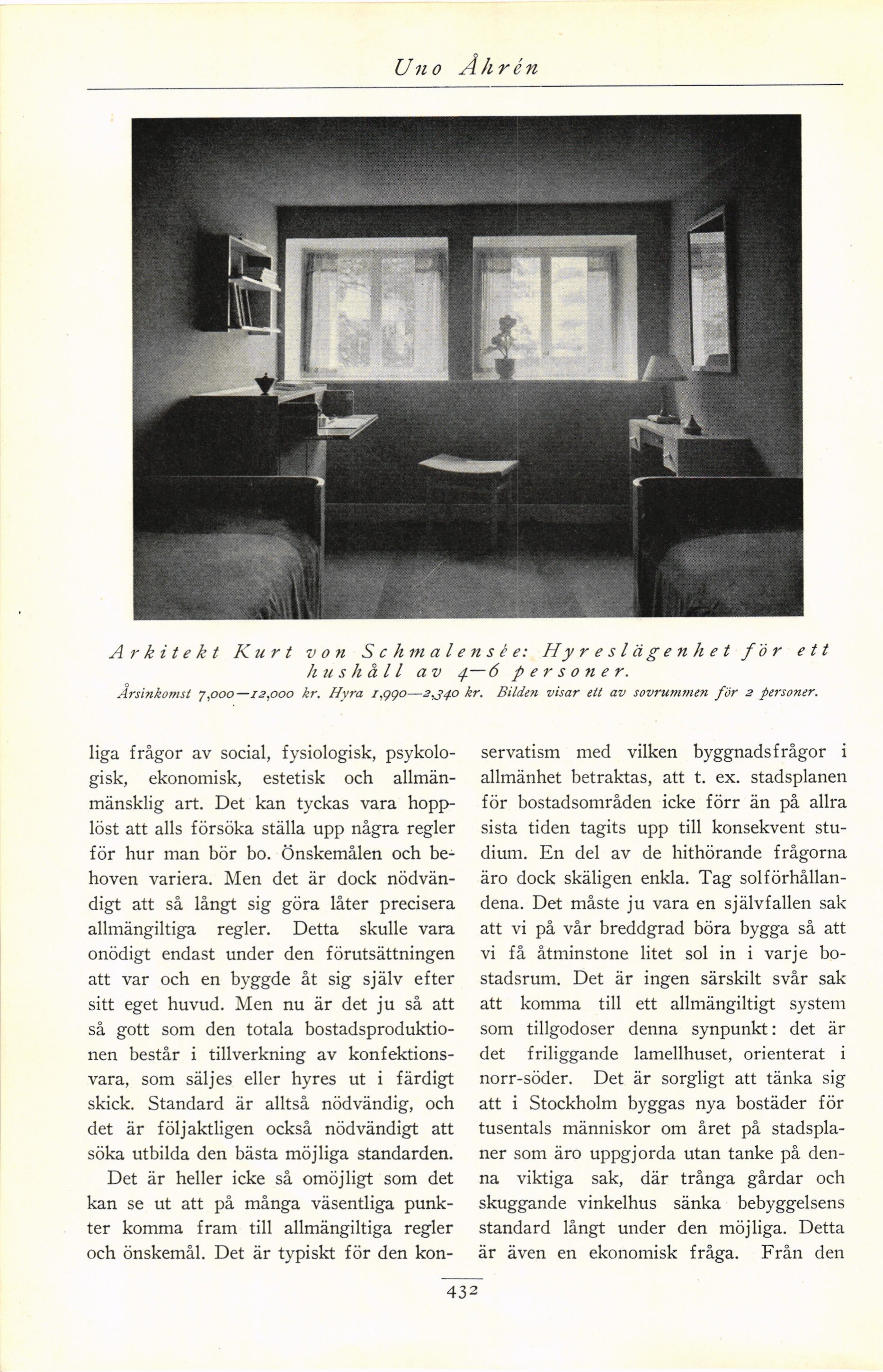 Arkitekt Kurt von Schmalensèe: Hyreslägenhet för ett