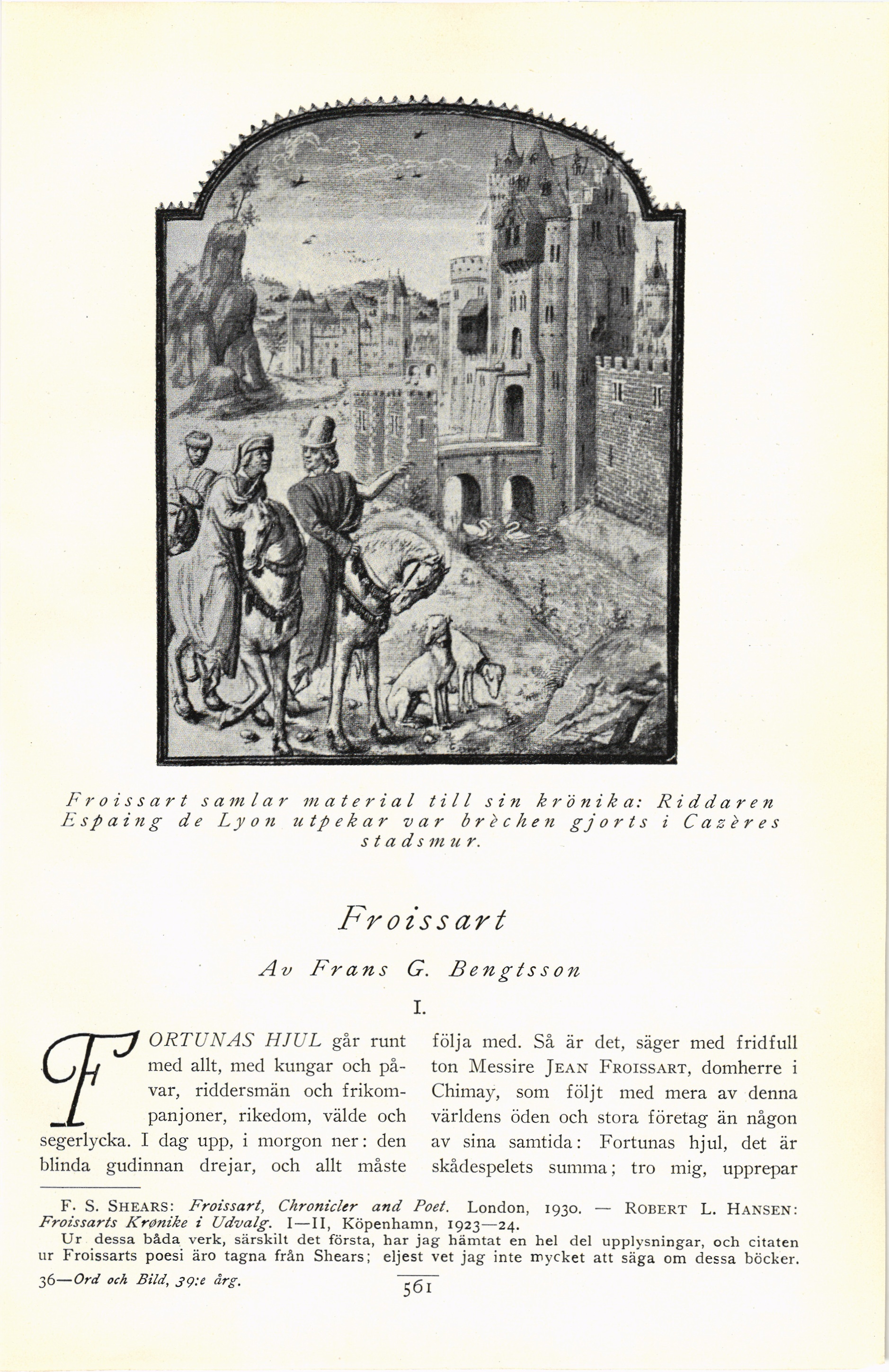 Full resolution (JPEG) - On this page / på denna sida - Elfte häftet - Froissart. Av Frans G. Bengtsson. I