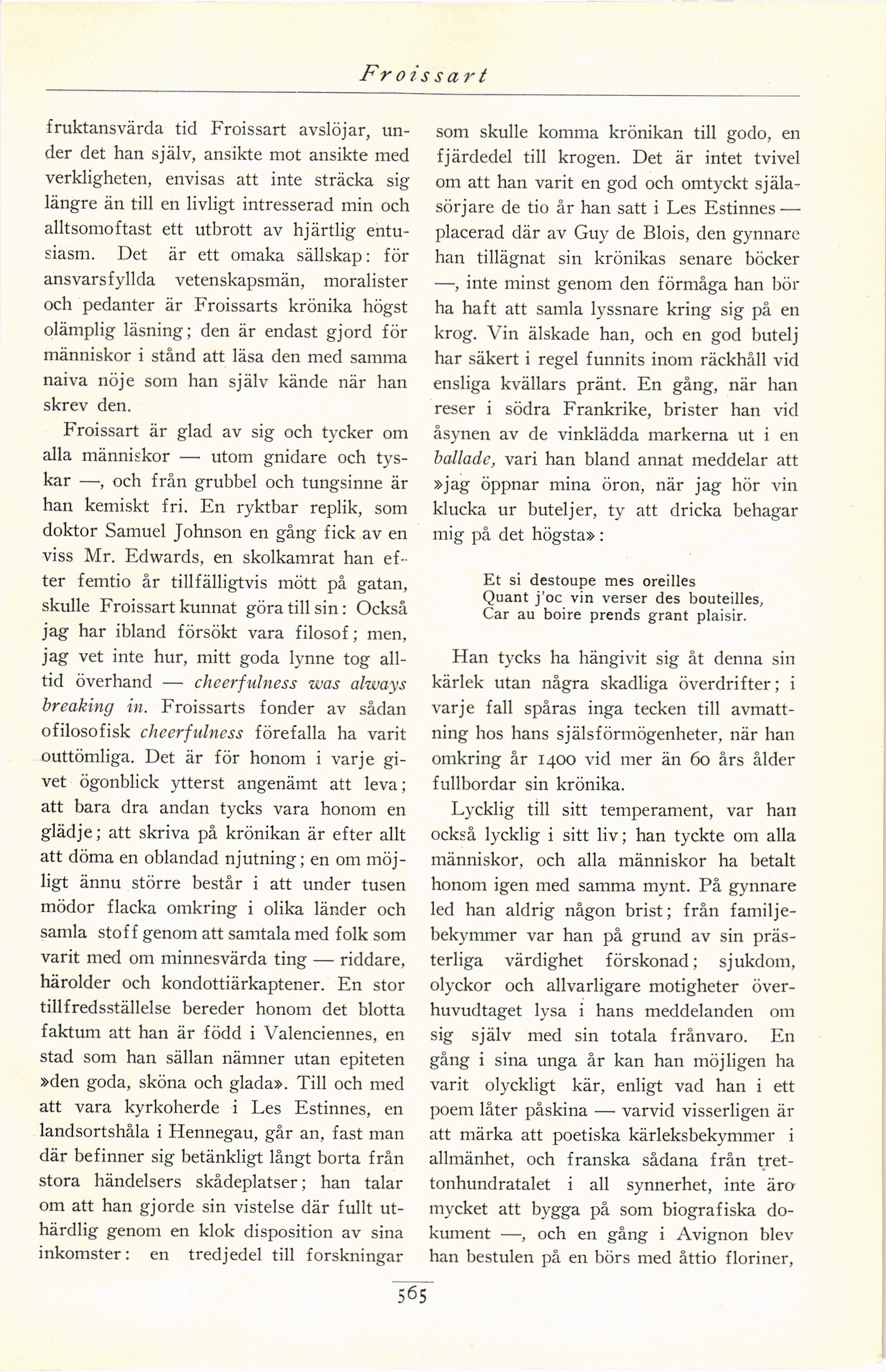 Full resolution (JPEG) - On this page / på denna sida - Elfte häftet - Froissart. Av Frans G. Bengtsson. I