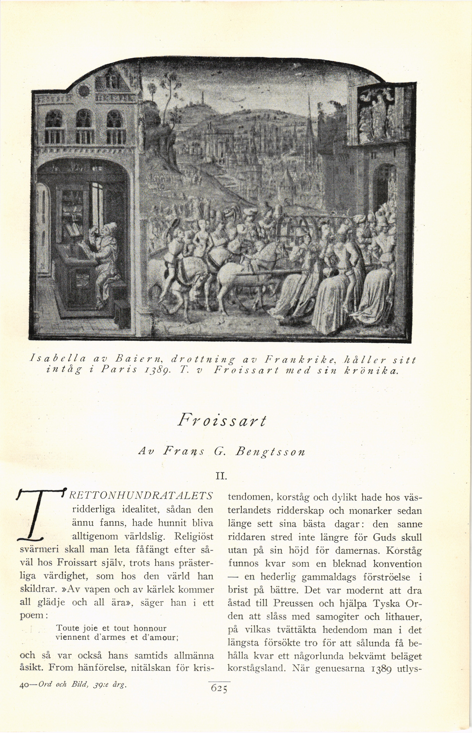 Full resolution (JPEG) - On this page / på denna sida - Tolfte häftet - Froissart. Av Frans G. Bengtsson. II