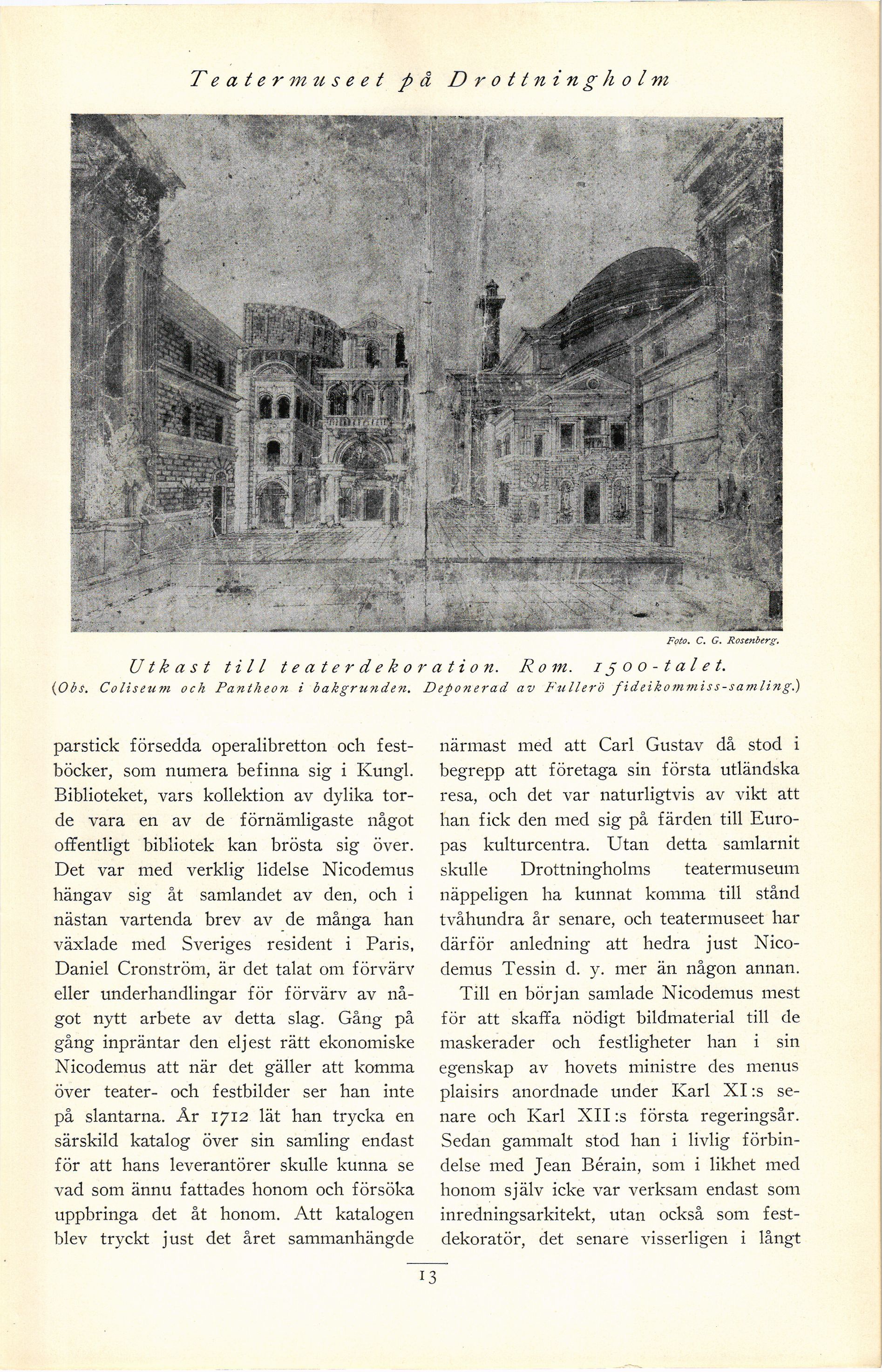 {Obs. Coliseum och Pantheon i bakgrunden. Depo?ierad av Fullerö fideikommiss-samling.)