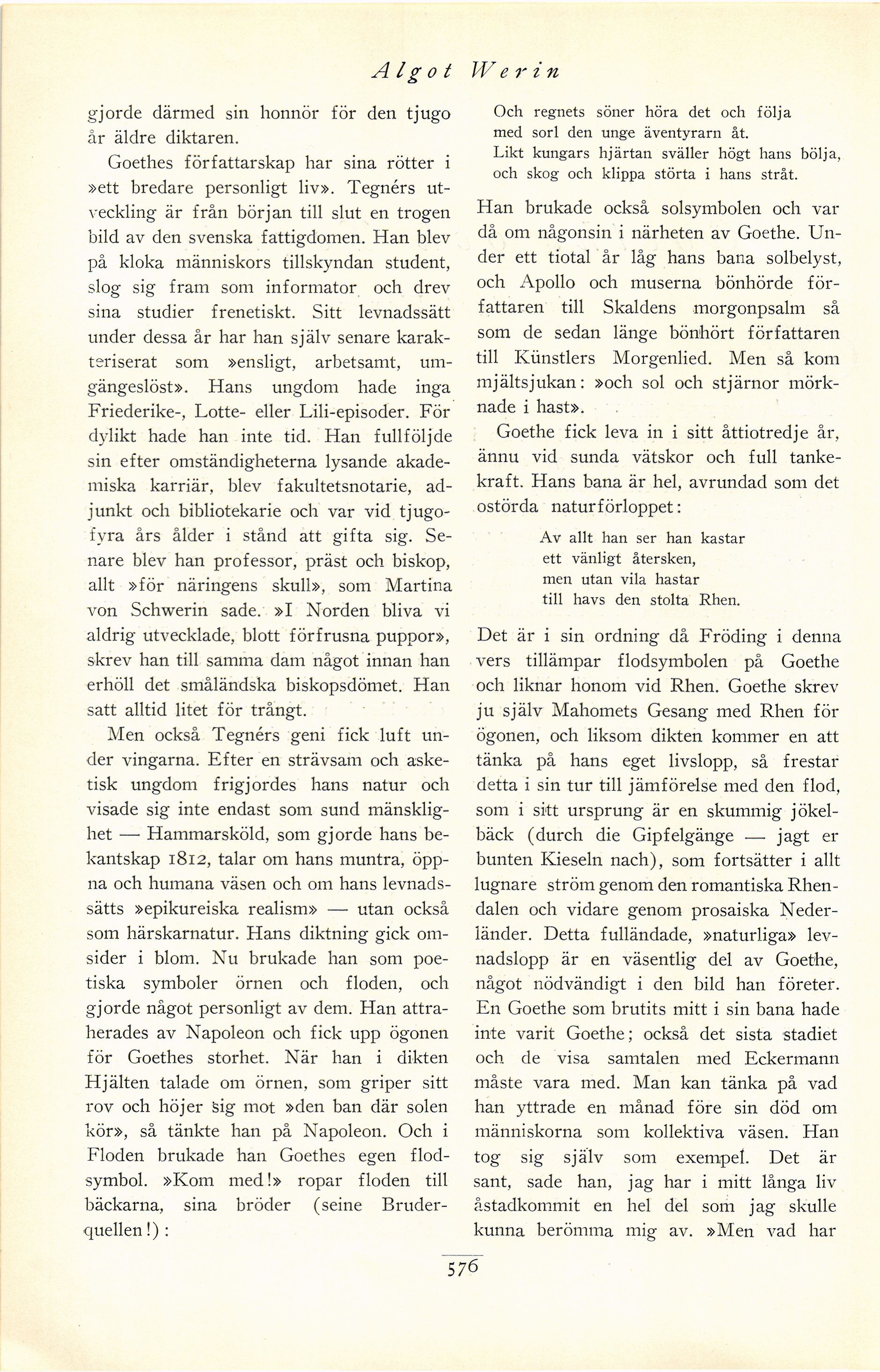 Full resolution (JPEG) - On this page / på denna sida - Elfte häftet - Goethe och Tegnér. Av Algot Werin