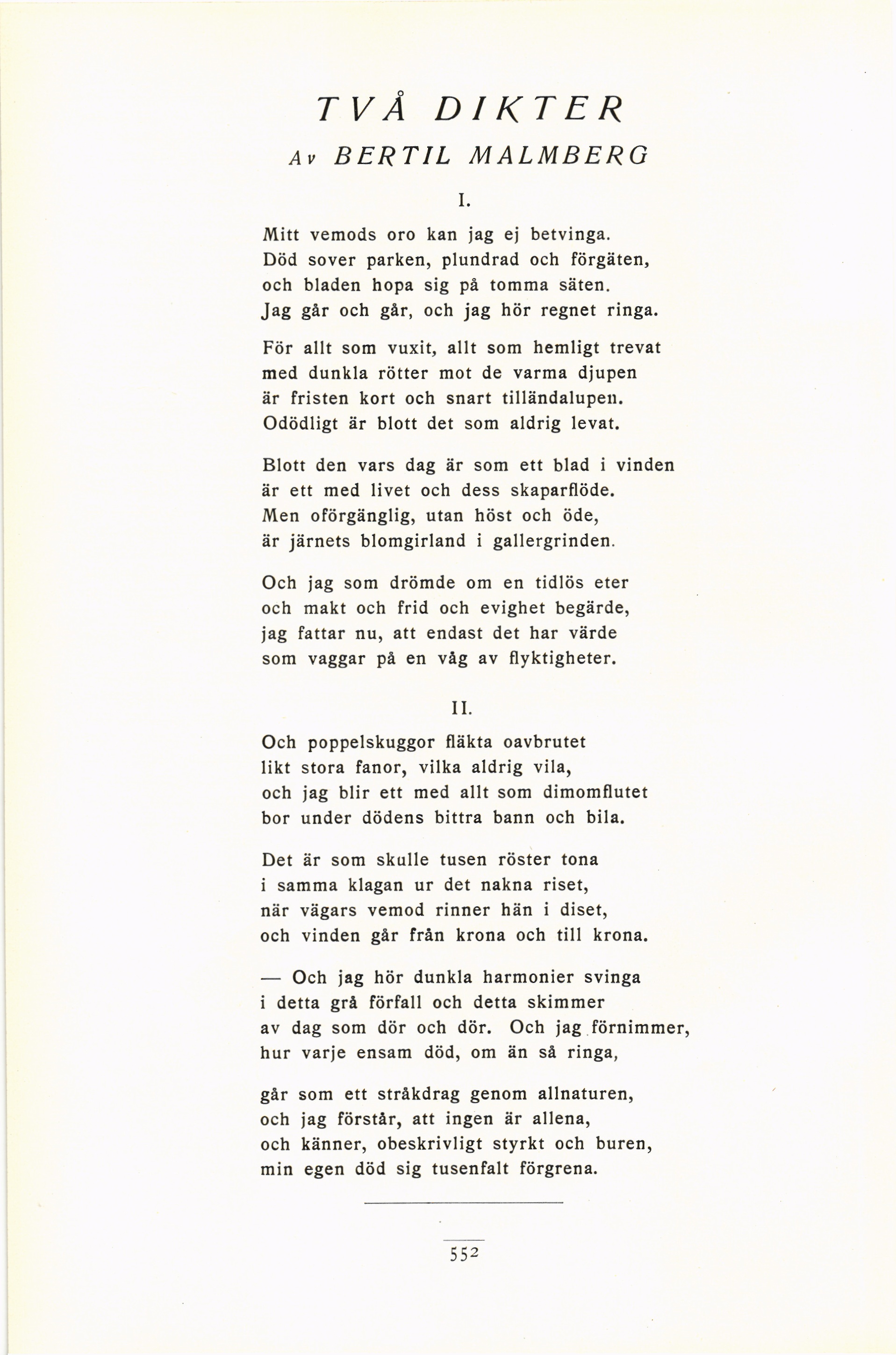 Full resolution (JPEG) - On this page / på denna sida - Tionde häftet - Två dikter. Av Bertil Malmberg