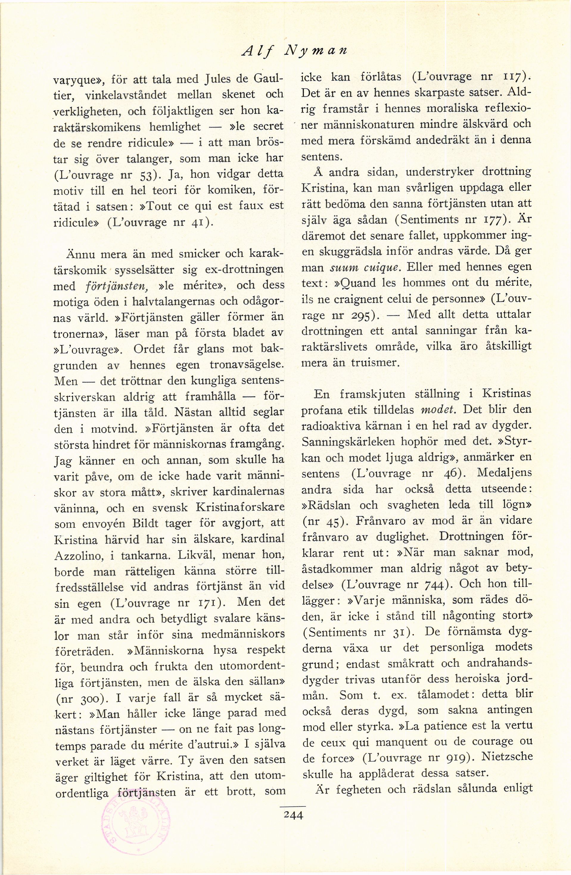 Full resolution (JPEG) - On this page / på denna sida - Femte häftet - Drottning Kristina som karaktärspsykolog och moralist. Av Alf Nyman