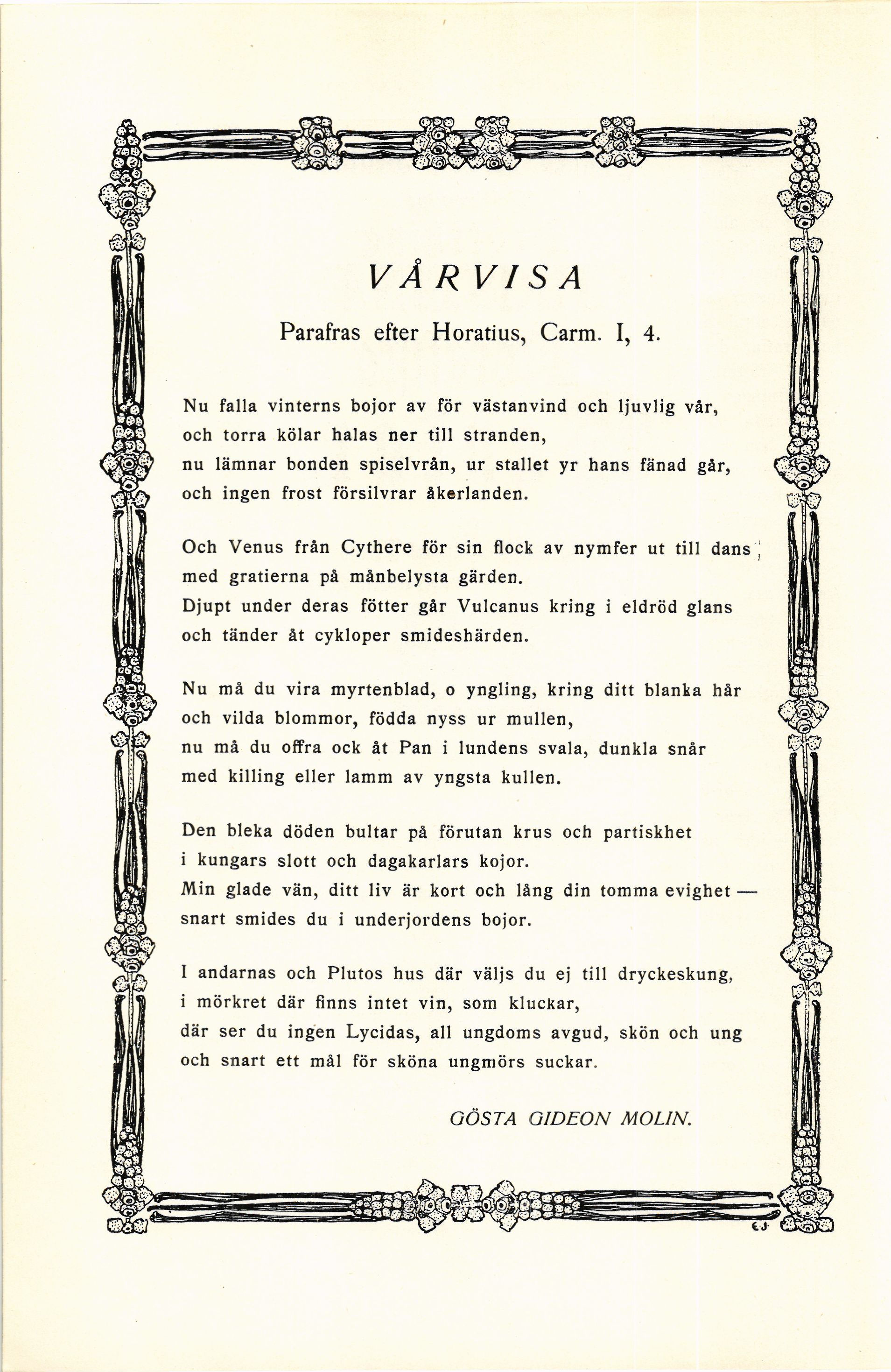 Full resolution (JPEG) - On this page / på denna sida - Femte häftet - Vårvisa. Parafras efter Horatius, Carm. I, 4. Av Gösta Gideon Molin
