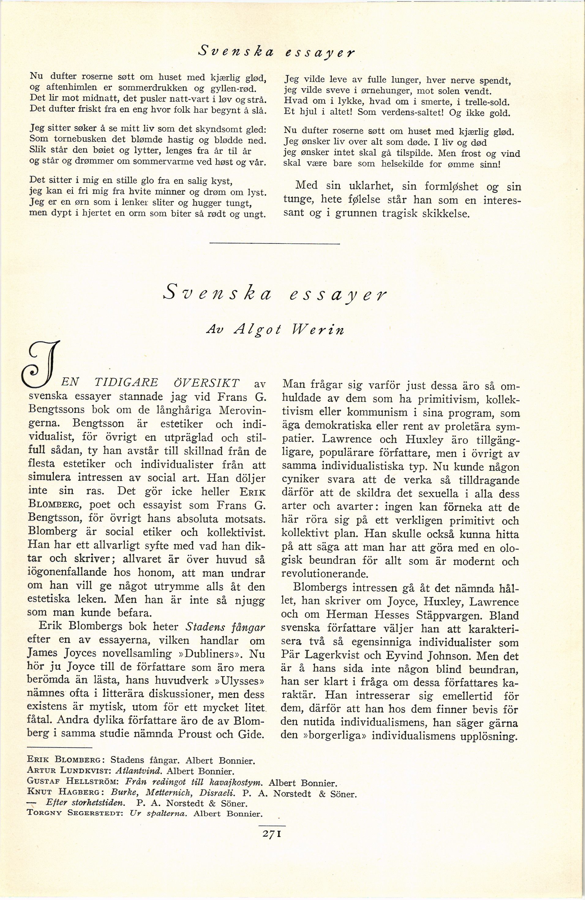 Full resolution (JPEG) - On this page / på denna sida - Femte häftet - Moderne norsk lyrikk. Wildenvey, Bull, Øverland, Hiorth-Schøyen, Reiss-Andersen, Backe. Av Alf Harbitz - Svenska essayer. Av Algot Werin