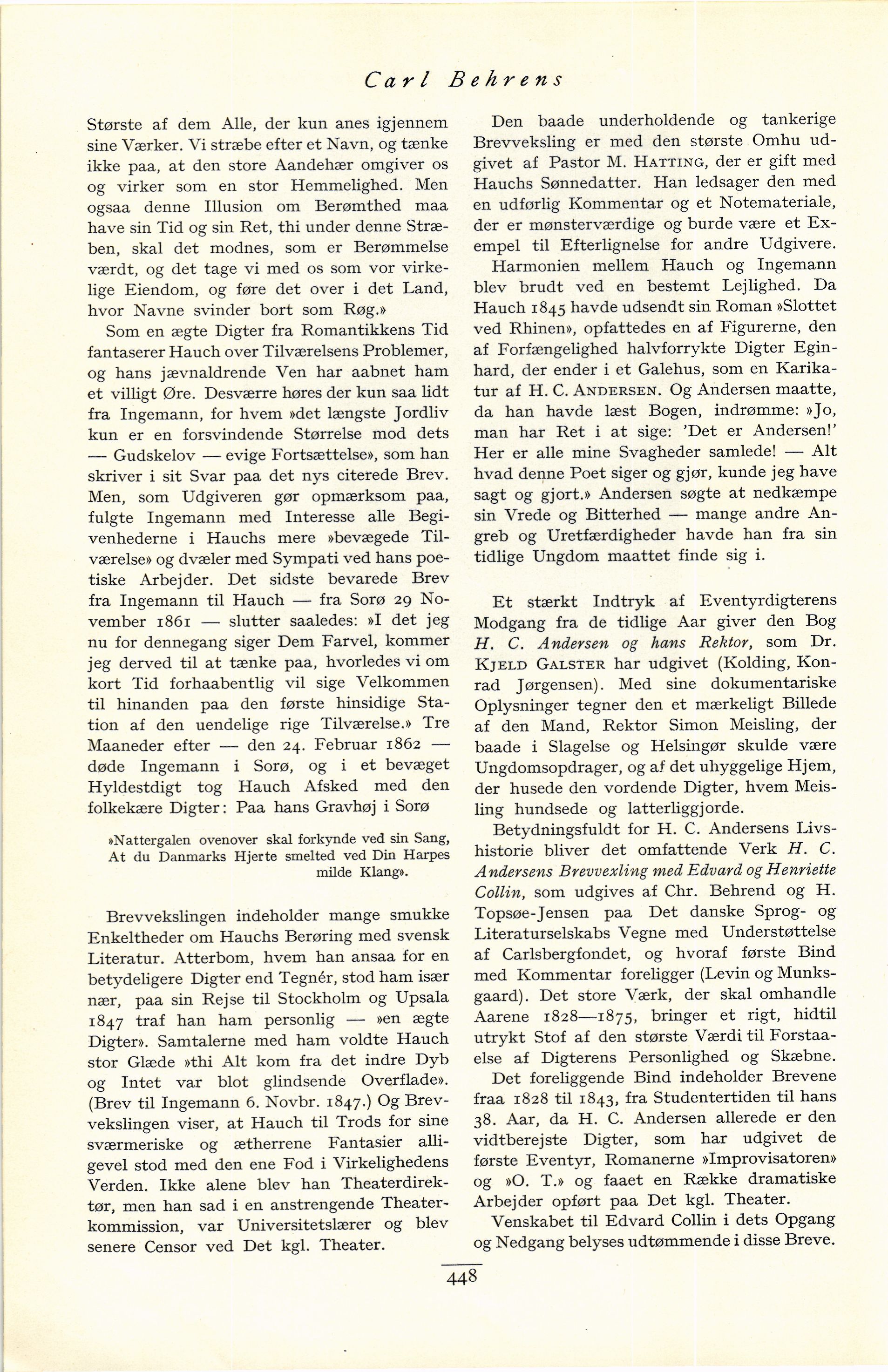 (Brev til Ingemann 6. Novbr. 1847.) Og