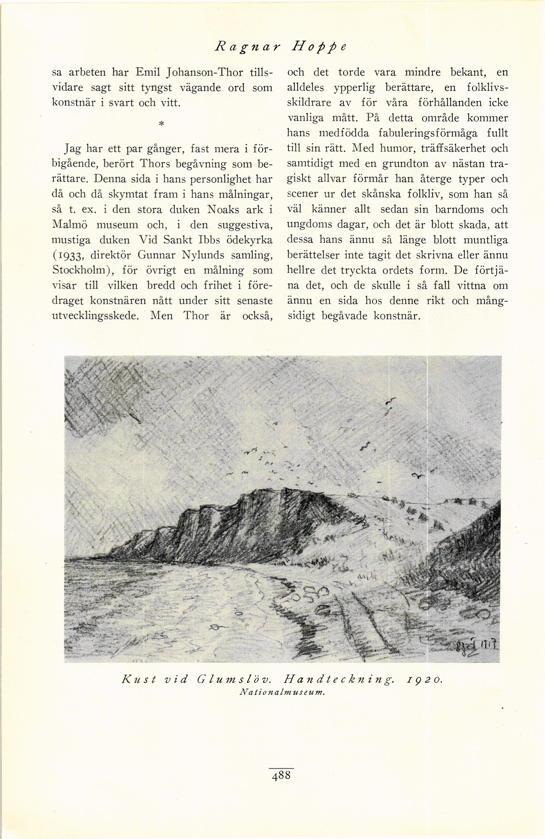 Kust vid G l um s l ö v. H a n d t e c k 11 i n g. 1920.