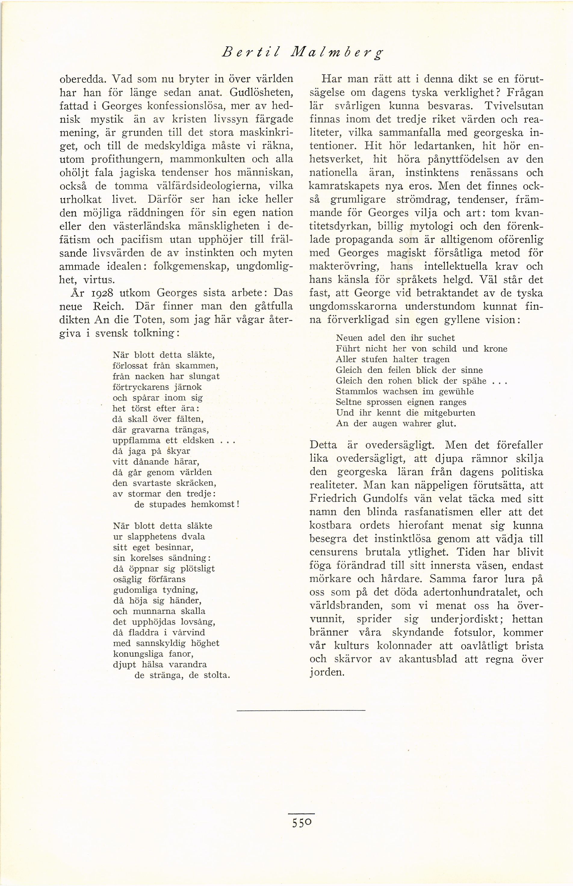 Full resolution (JPEG) - On this page / på denna sida - Tionde häftet - Stefan George. Av Bertil Malmberg