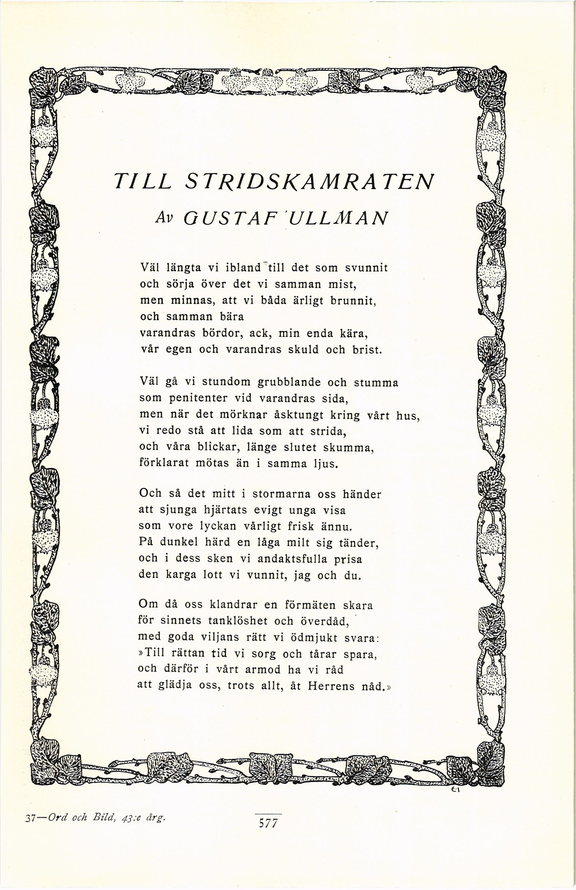 Full resolution (JPEG) - On this page / på denna sida - Elfte häftet - Till stridskamraten. Av Gustaf Ullman