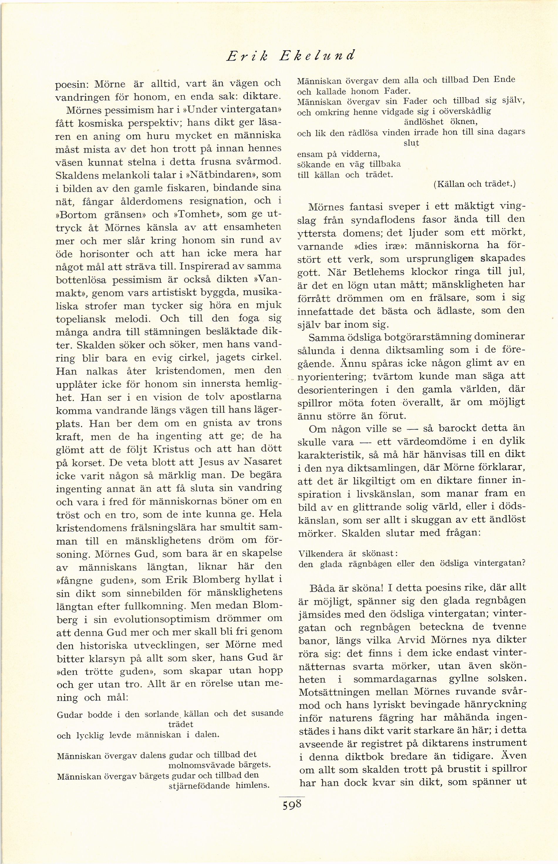 banor, längs vilka Arvid Mörnes nya dikter