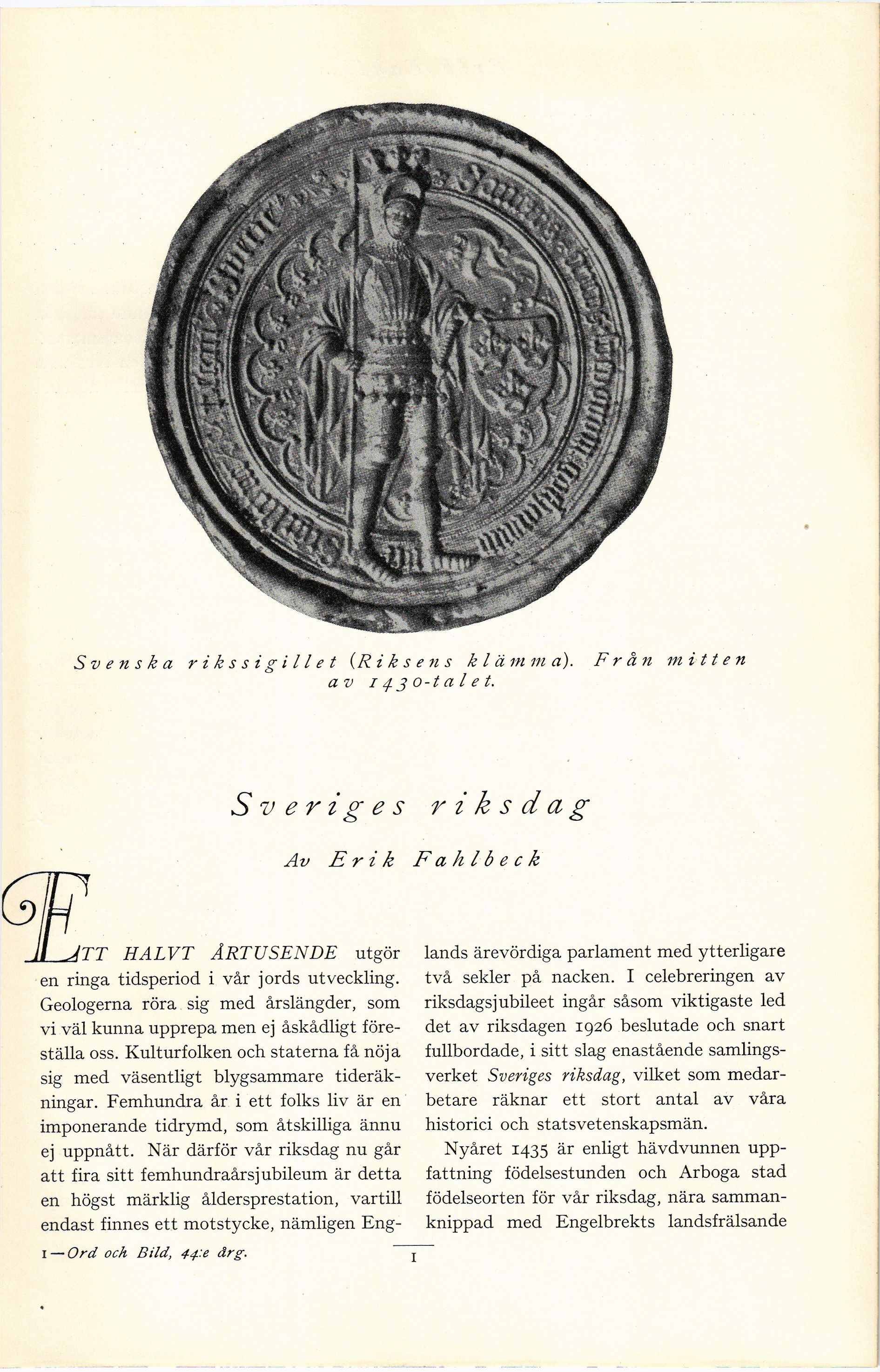 Full resolution (JPEG) - On this page / på denna sida - Första häftet - Sveriges riksdag. Av Erik Fahlbeck