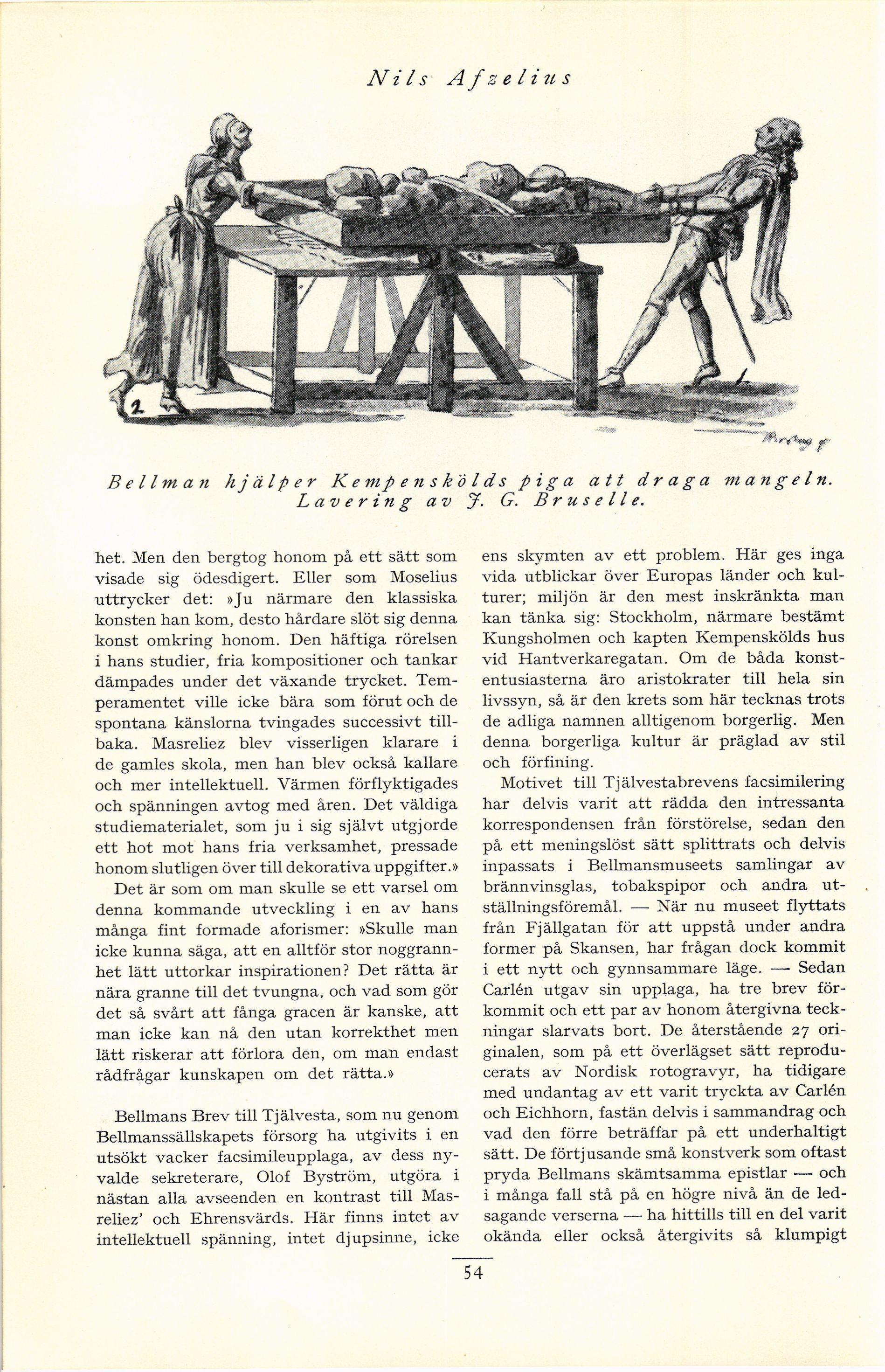 Bellman hjälper Kempenskölds piga att draga m an g e l n.
