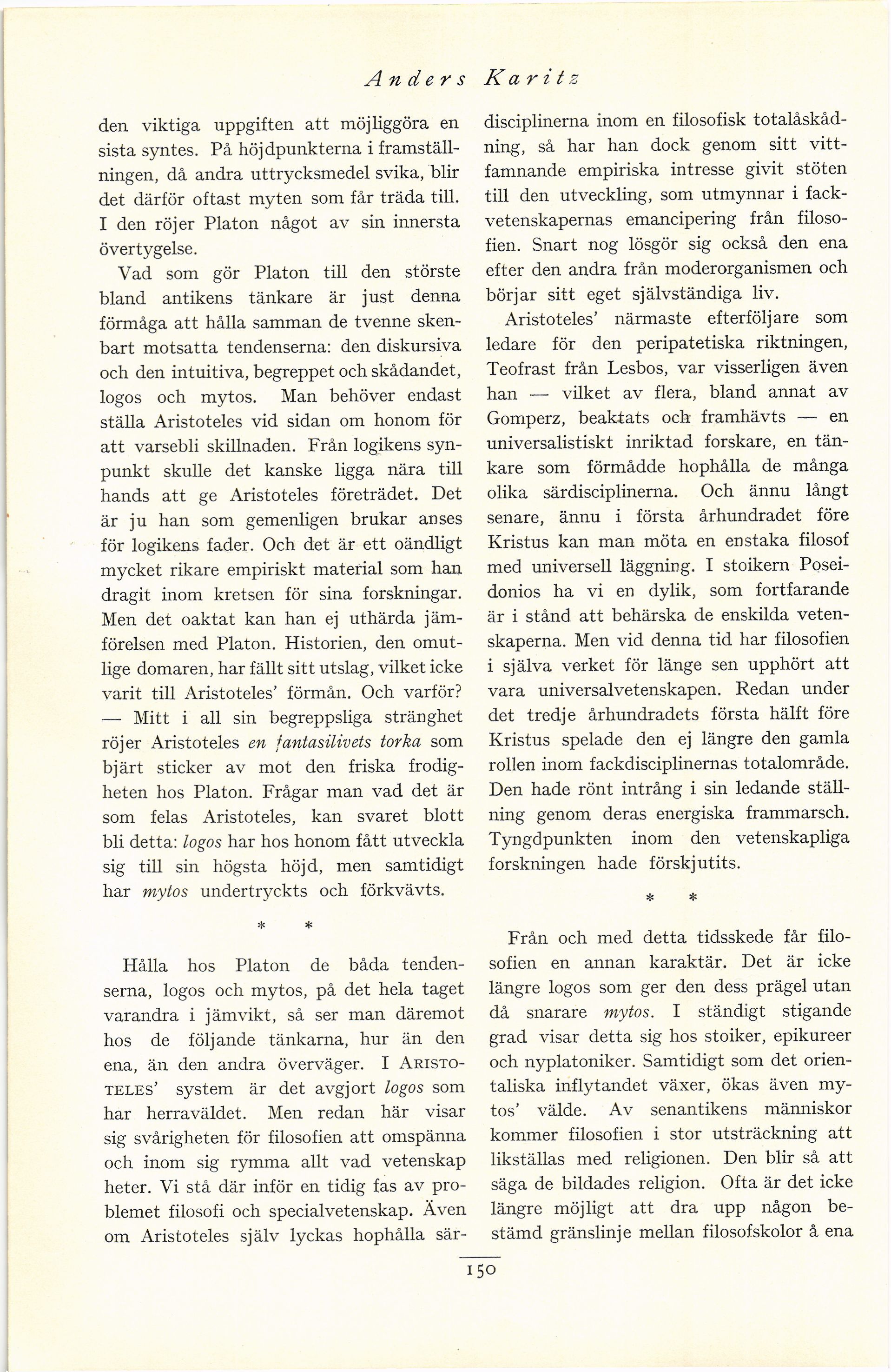 Aristoteles’ system är det avgjort logos som