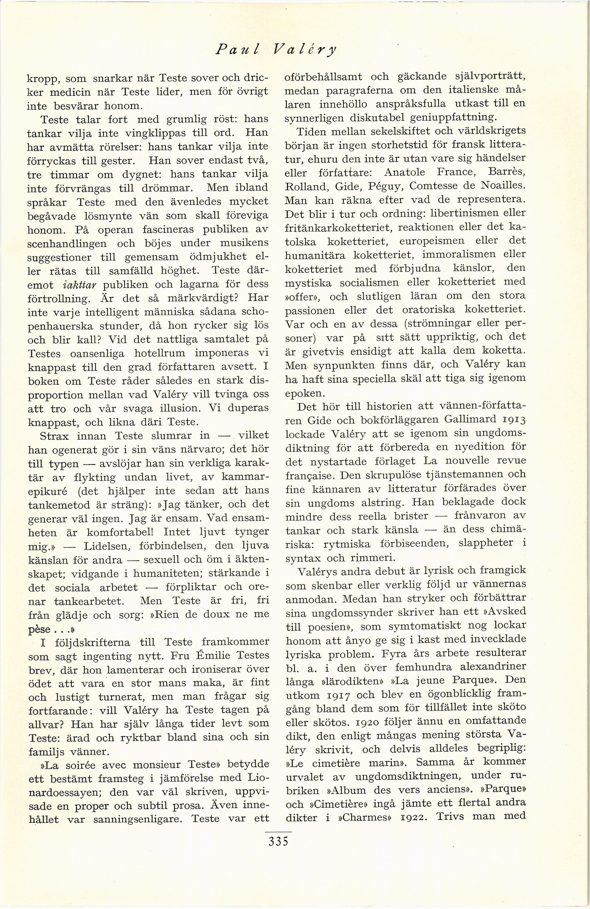 Valéry skrivit, och delvis alldeles begriplig: