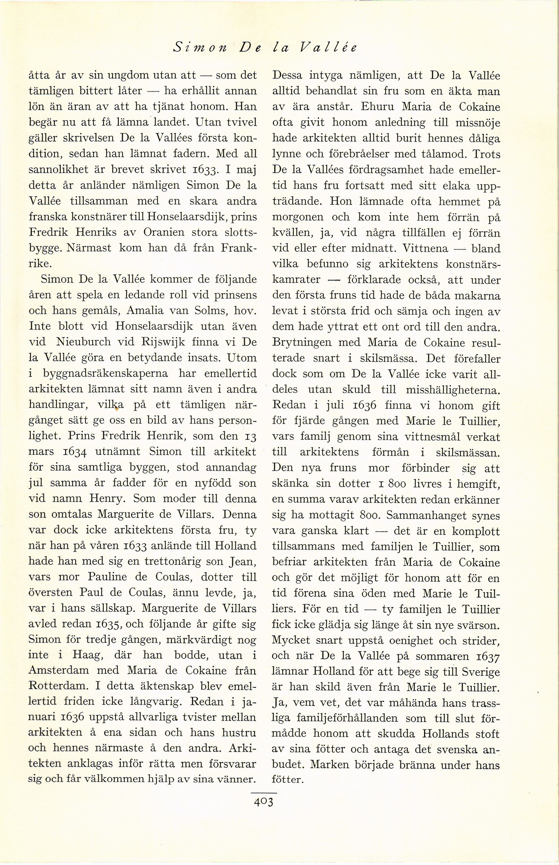 Full resolution (JPEG) - On this page / på denna sida - Åttonde häftet - Simon De la Vallée. Några personalia. Av Sten Karling