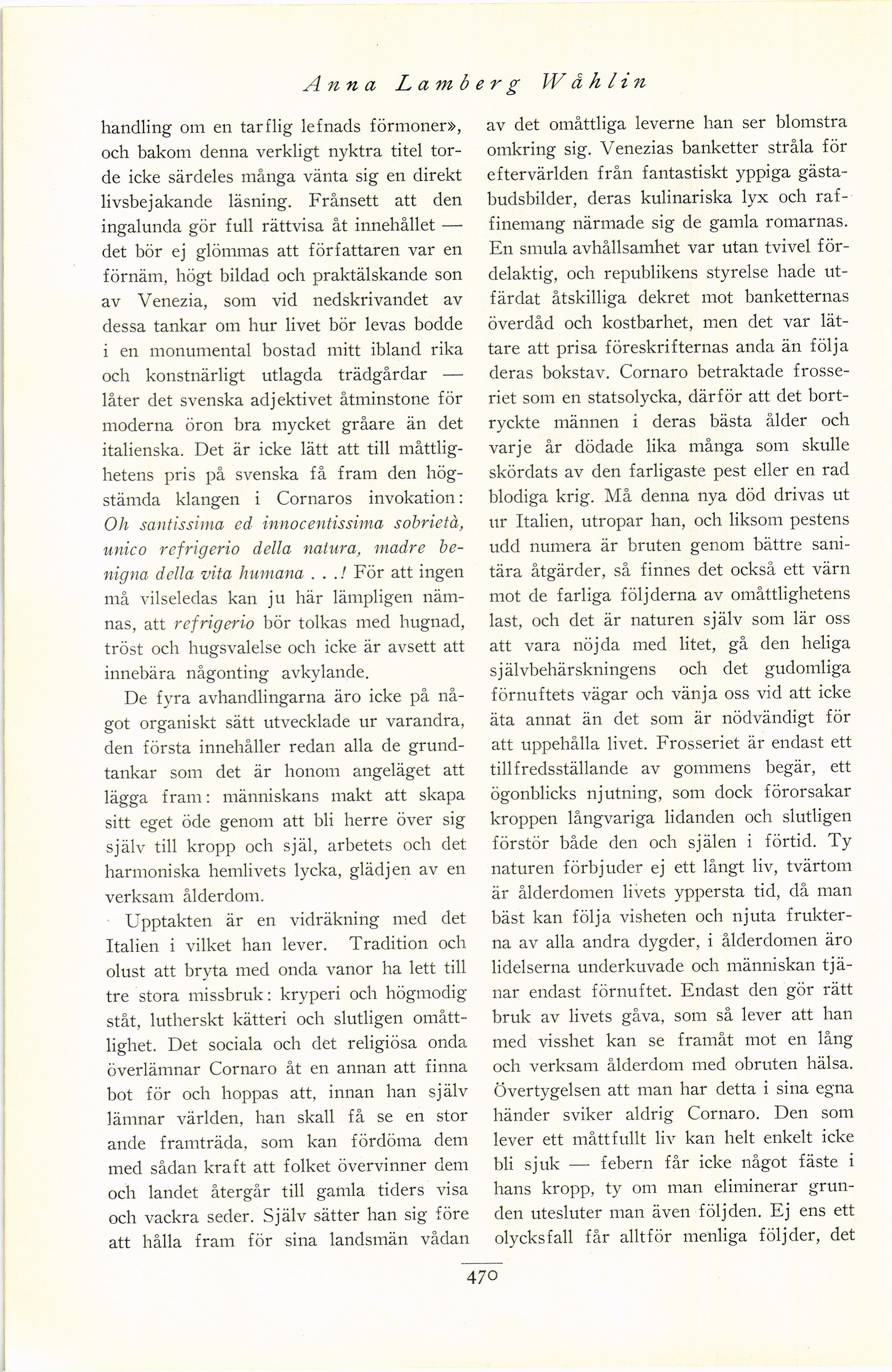 Full resolution (JPEG) - On this page / på denna sida - Nionde häftet - Luigi Cornaro. Av Anna Lamberg Wåhlin
