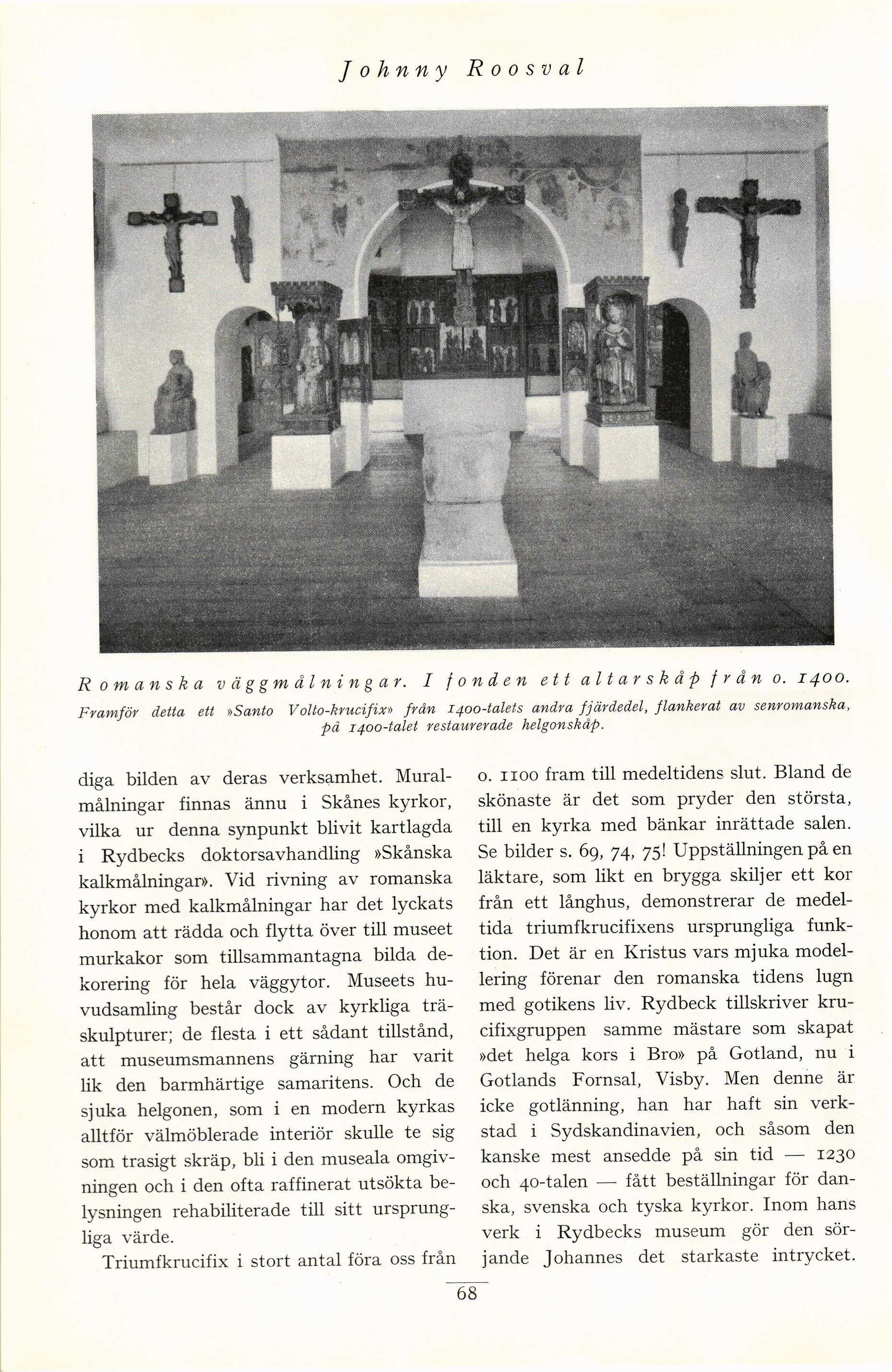 Framför detta ett »Santo Volto-krucifix» från 1400-talets andra fjärdedel, flankerat av senromanska,