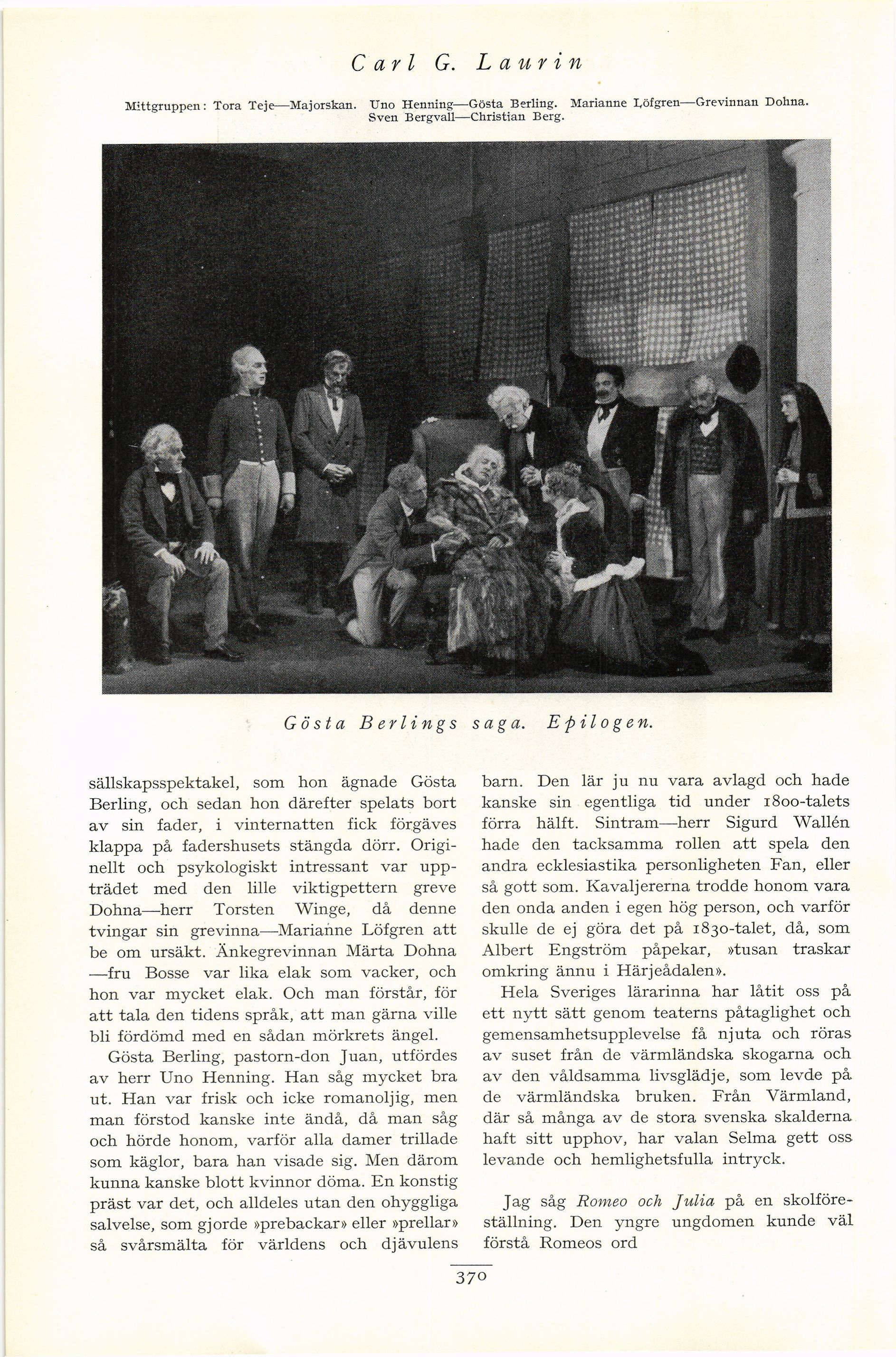 Mittgruppen : Tora Teje—Majorskan. Uno Henning—Gösta Berling. Marianne Löfgren—Grevinnan Dohna.