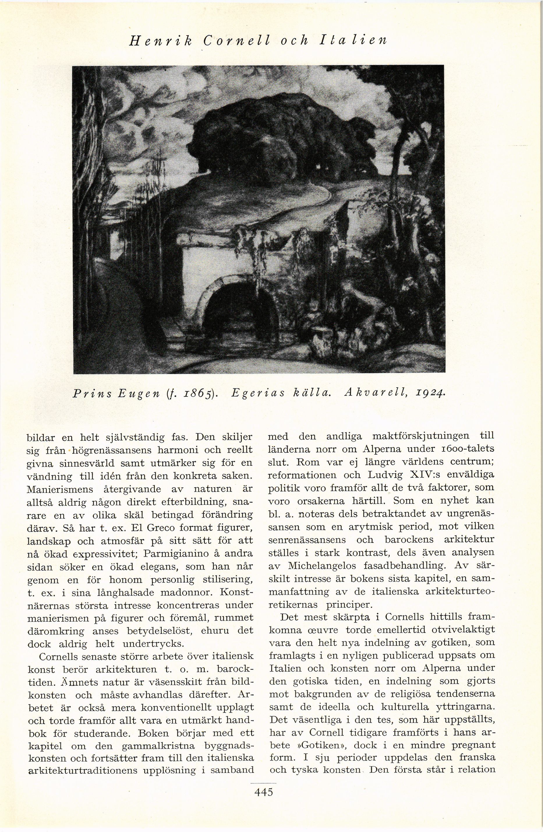Prins Eugen (/. 1865). Eger i as källa. A k v ar ell, 1924.