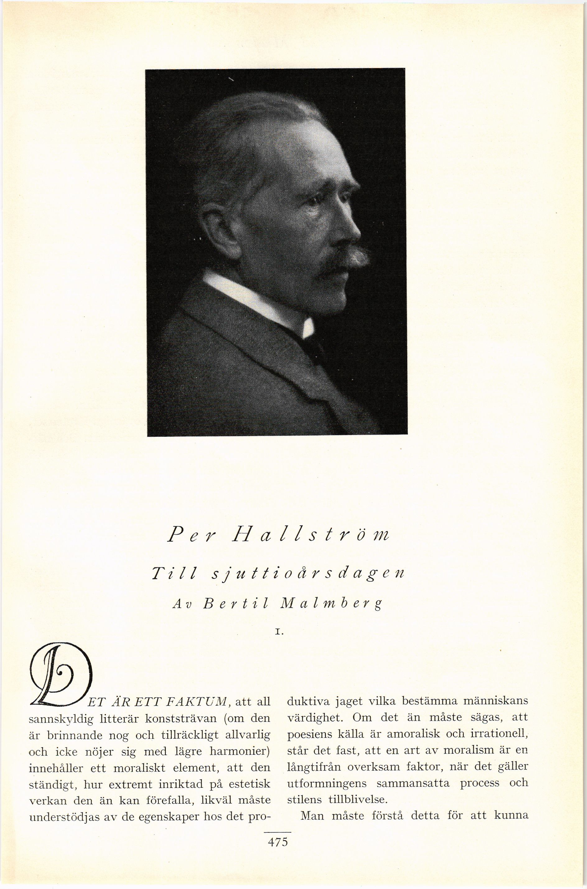 Full resolution (JPEG) - On this page / på denna sida - Nionde häftet - Per Hallström. Till sjuttioårsdagen. Av Bertil Malmberg