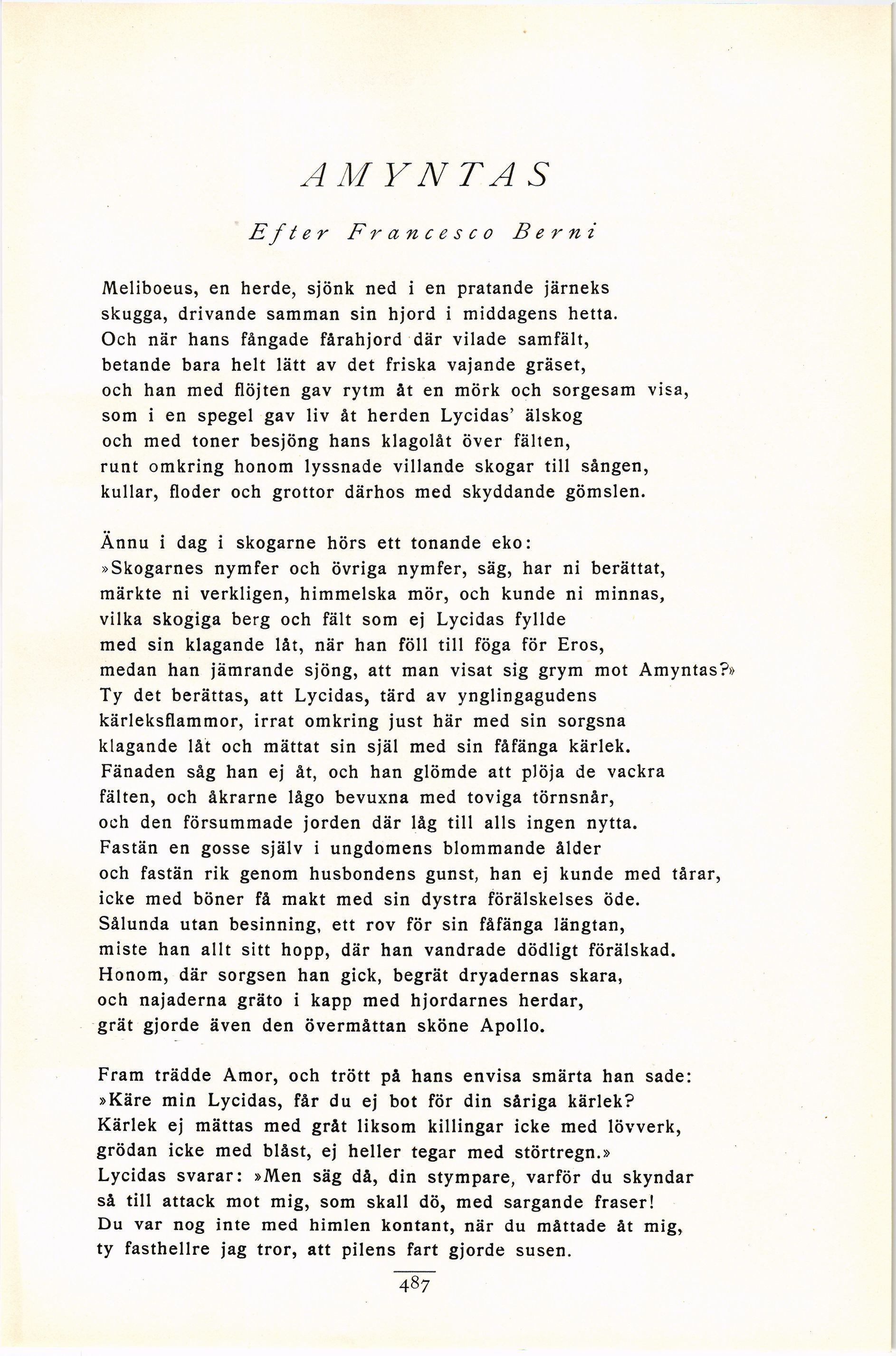 Full resolution (JPEG) - On this page / på denna sida - Nionde häftet - Amyntas. Efter Francesco Berni. Översatt av Ane Randel