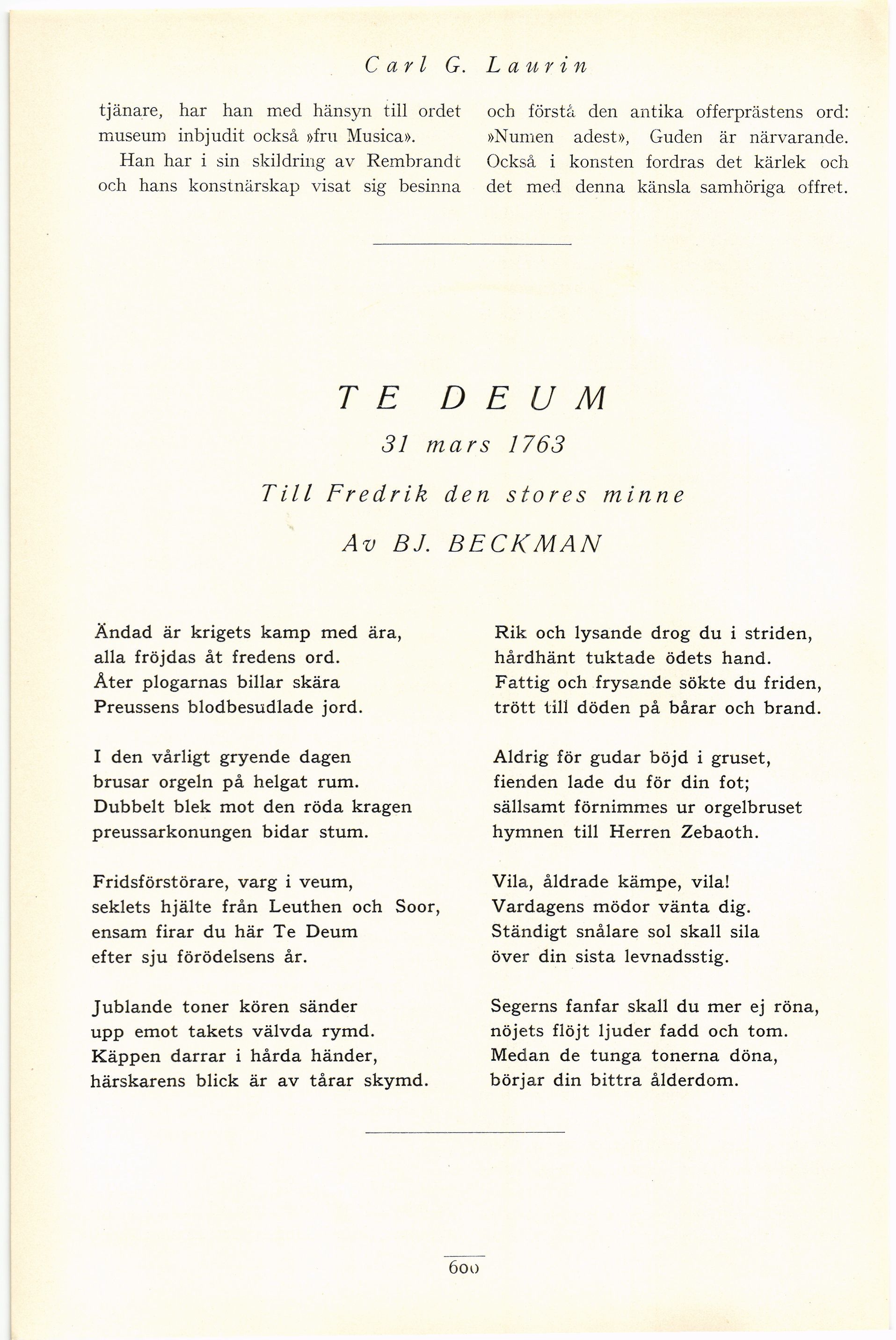 Full resolution (JPEG) - On this page / på denna sida - Elfte häftet - Omkring »Batavernas sammansvärjning». Av Carl G. Laurin - Te deum. 31 mars 1763. Till Fredrik den stores minne. Av Bj. Beckman